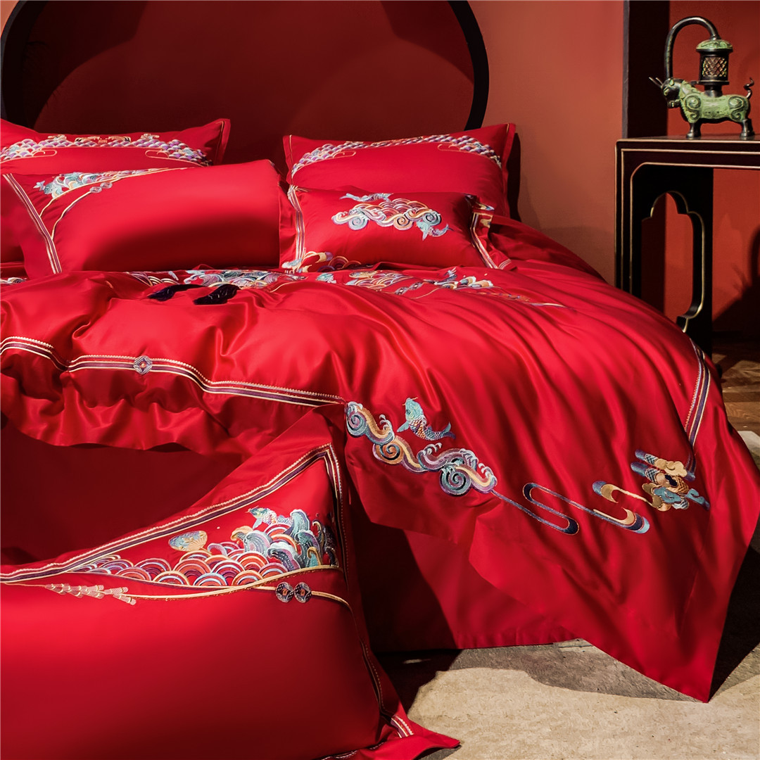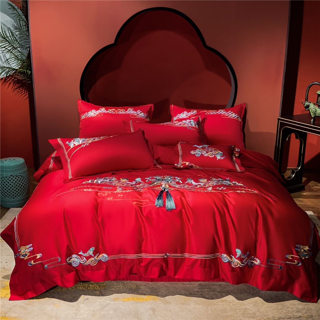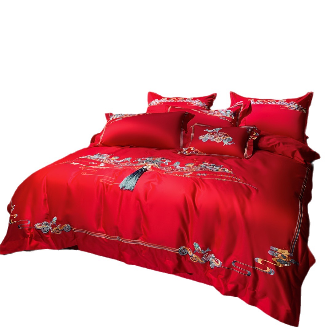 High-precision Wedding Red Embroidery Bedding Bedding Wedding Festive Cotton Four-piece Home Textile Set