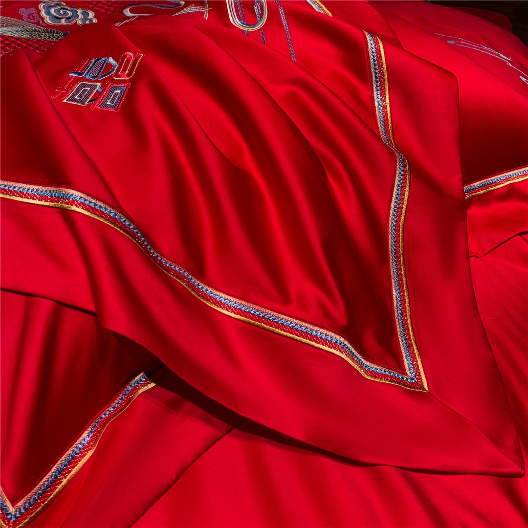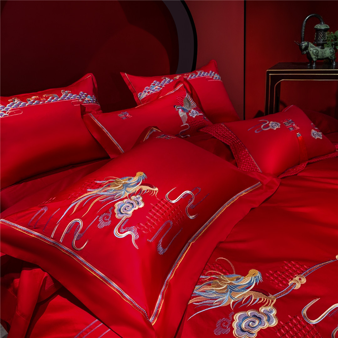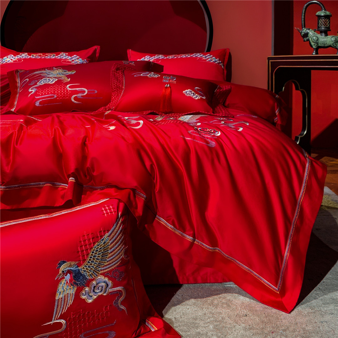Modern Wedding Red Phoenix Embroidery Bedding And Bedding Wedding Festive High-end Pure Cotton Four-piece Home Textile Set