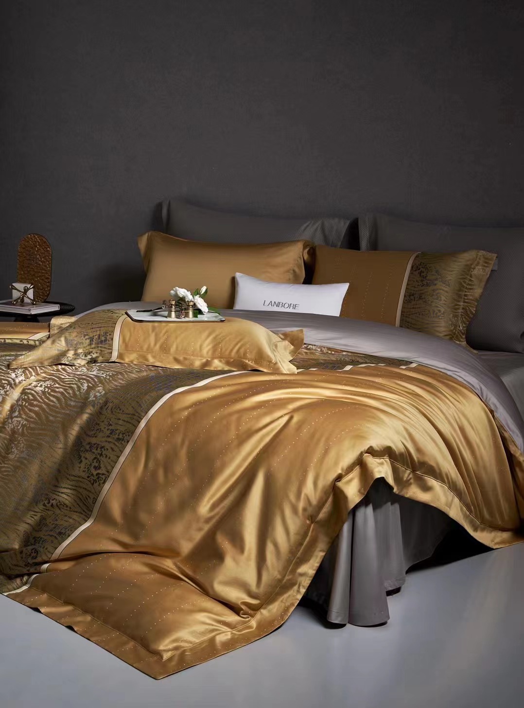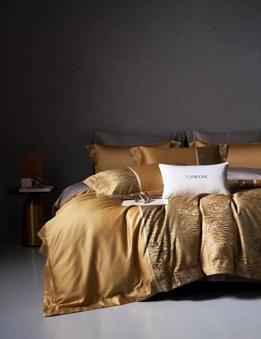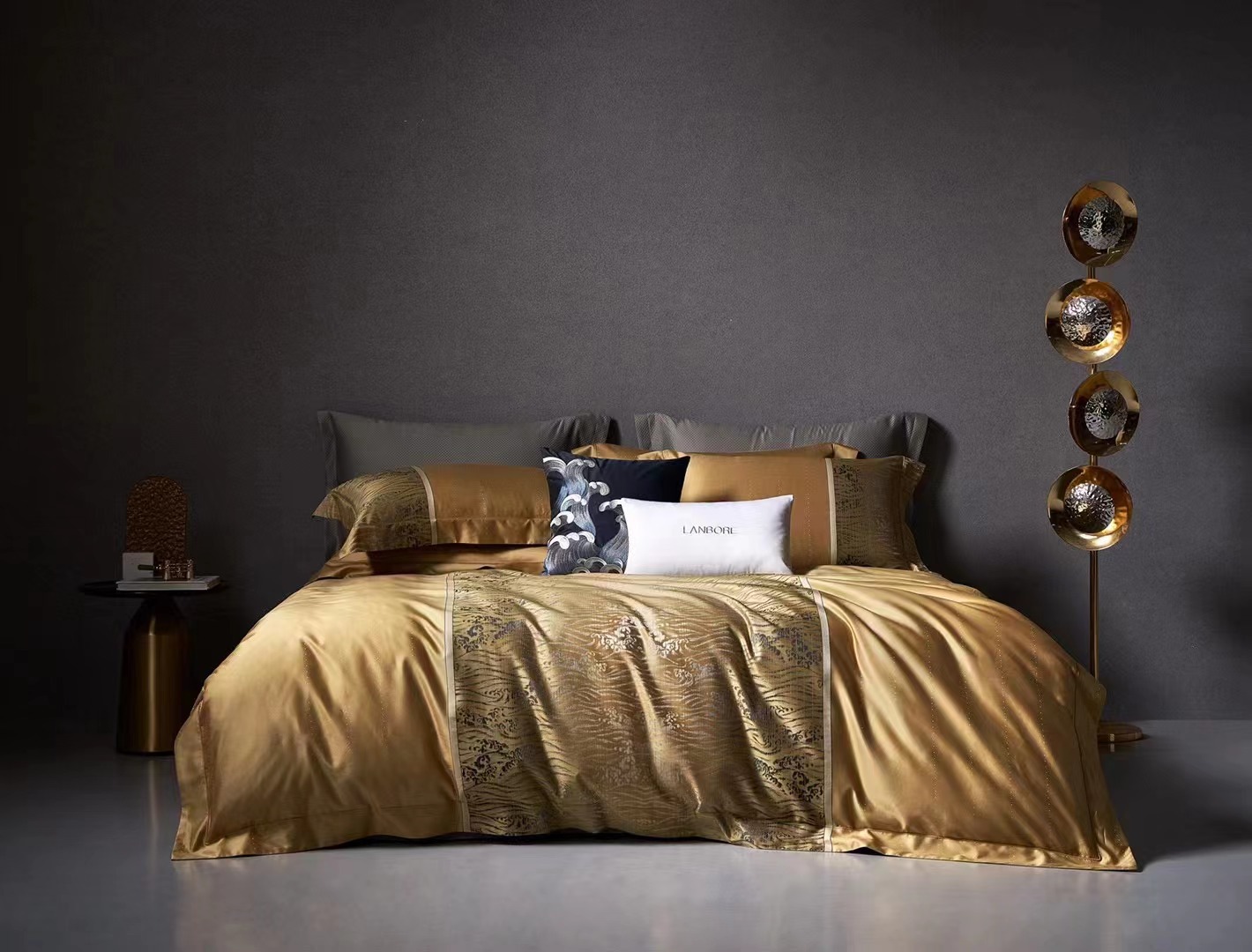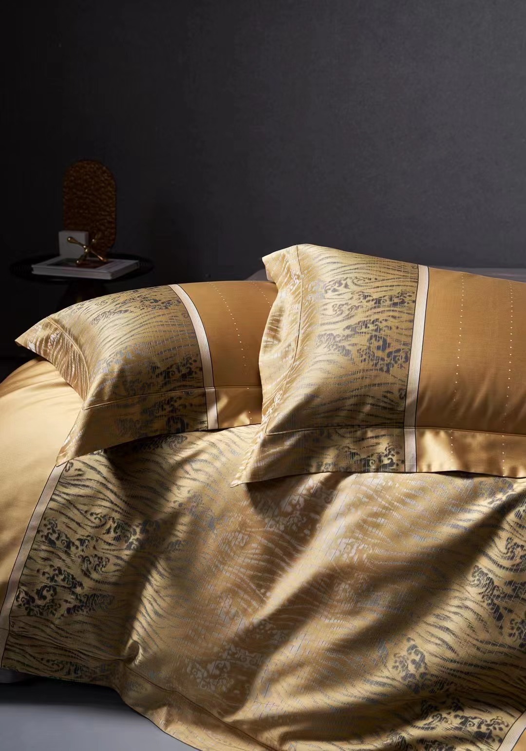 Top Luxury Modern Art Bedding Bedding Wave Ripple Cotton Yarn-dyed Jacquard Long-staple Cotton Four-piece Set Home Textile Yunman