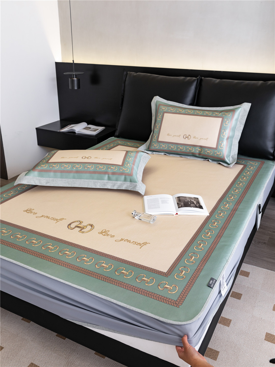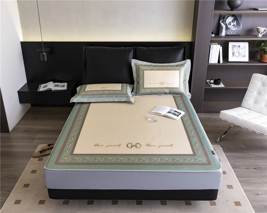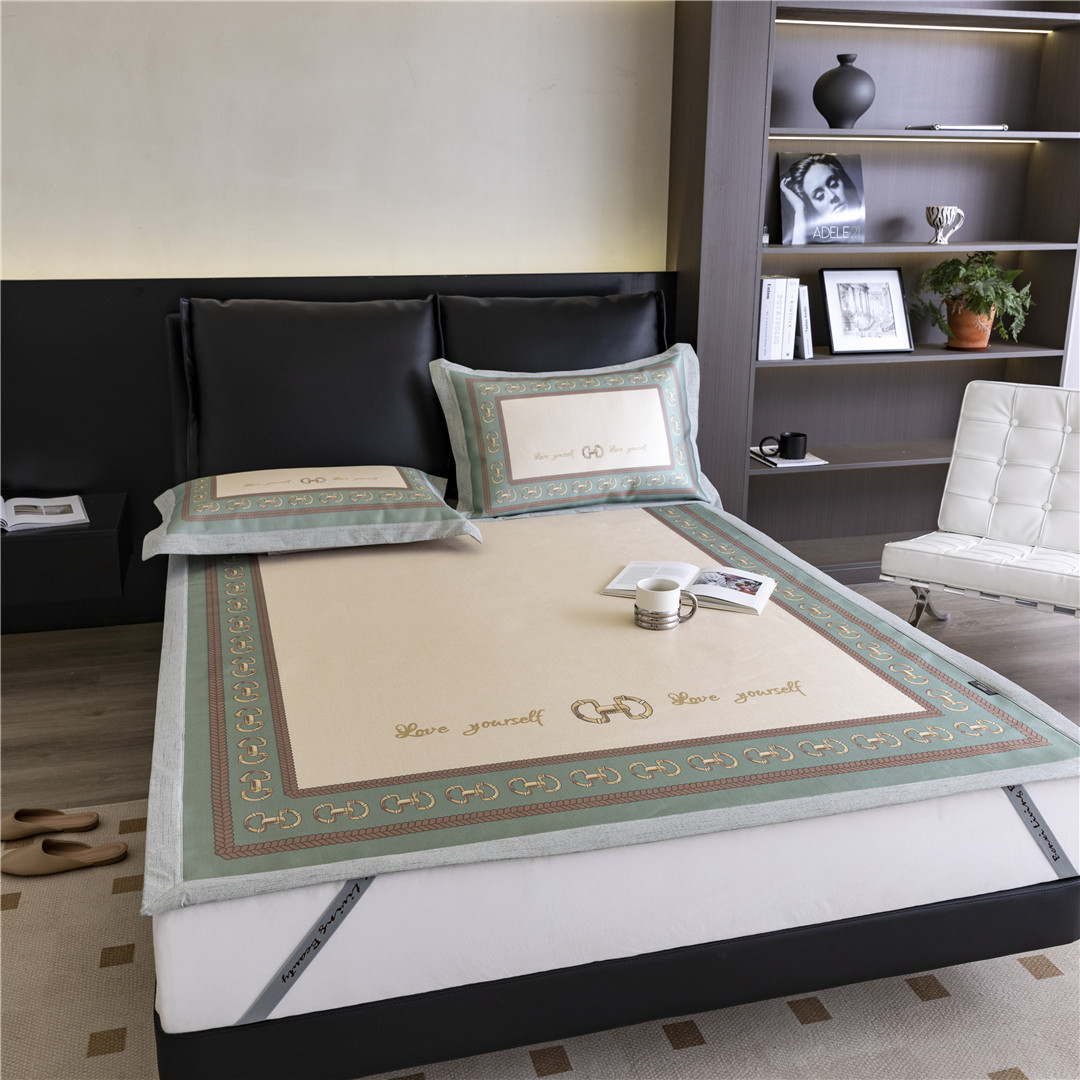 Light Luxury Brand-style High-end Ice Silk Mat Foldable Machine Washable Air-conditioned Mat Thickened Breathable Three-piece Set