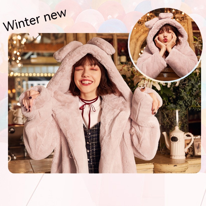 Winter Imitation Fur Coat Mid-length Women's Thickened Loose Hooded Cotton Coat Fur Integrated Cotton Coat