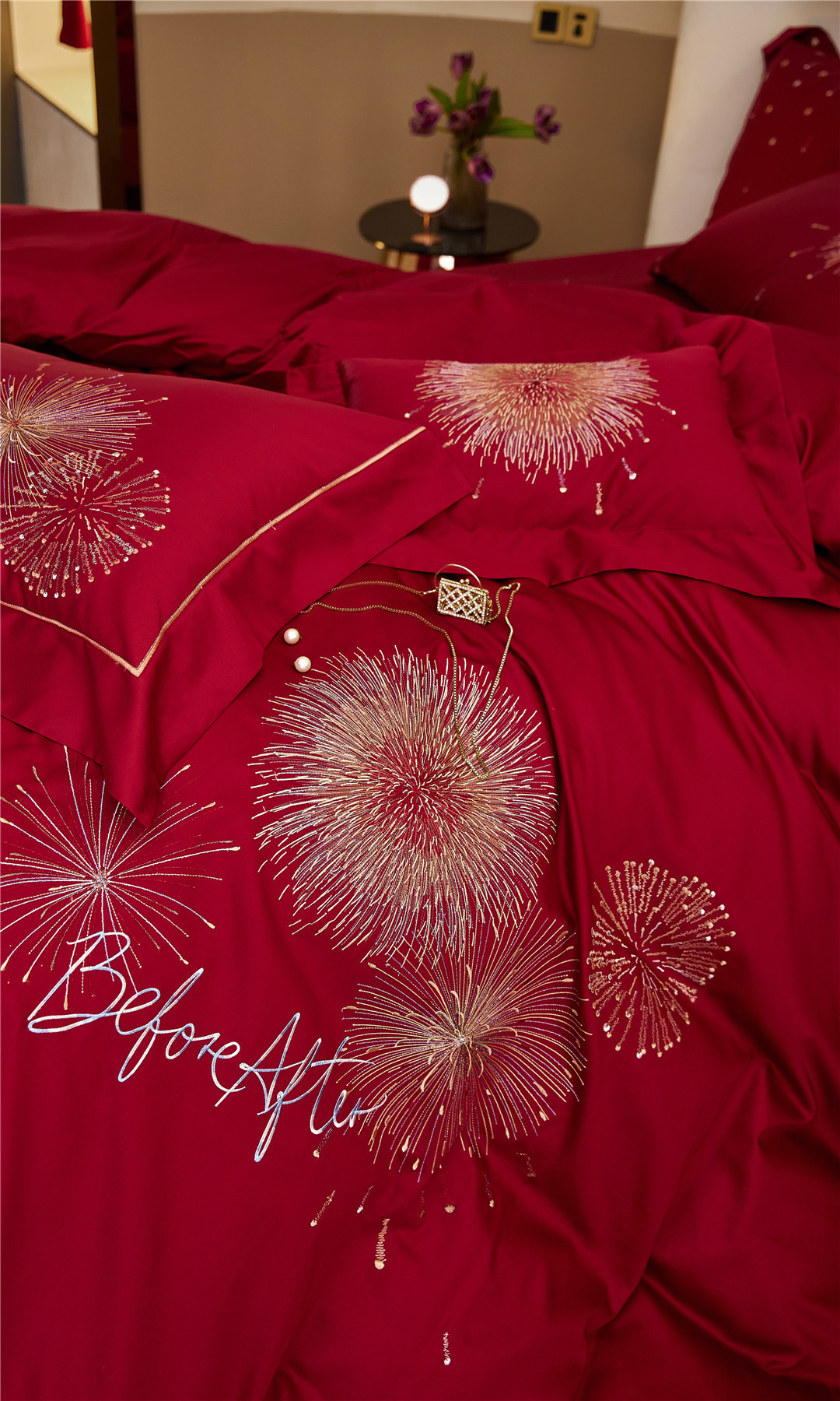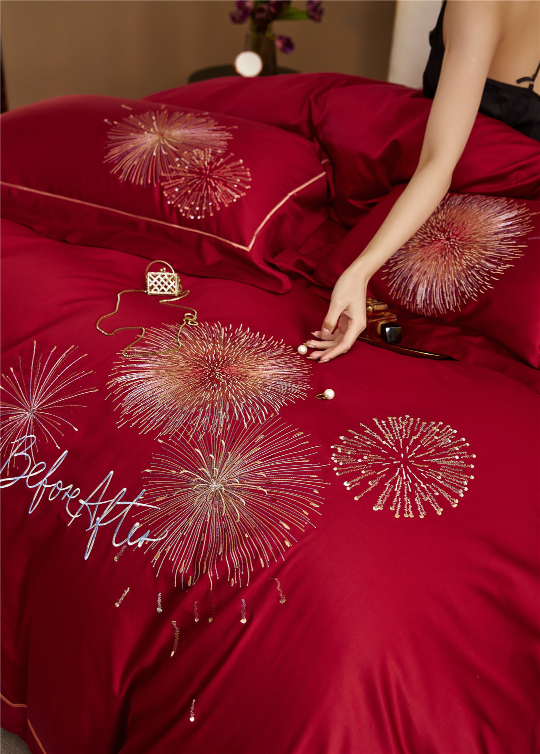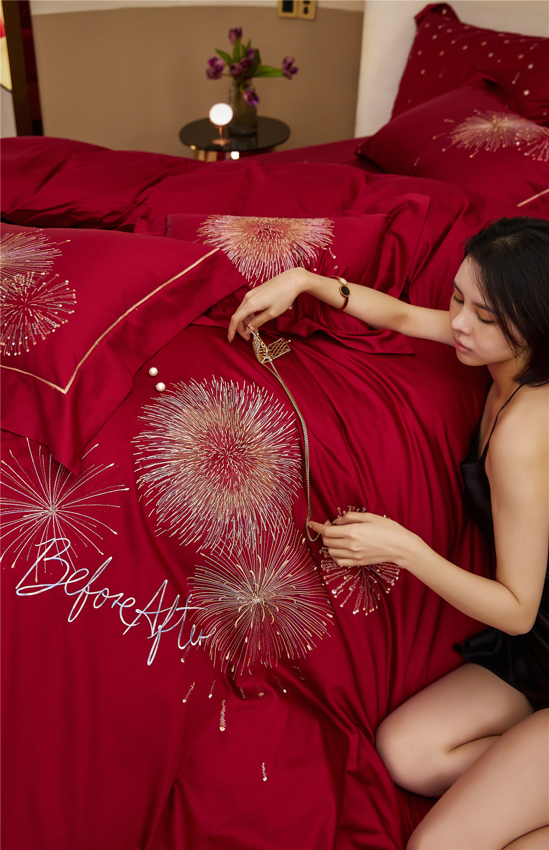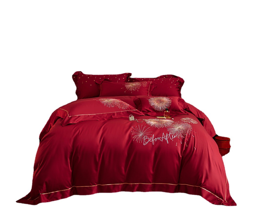 Wedding Red Embroidered Cotton Long-staple Cotton Four-piece High-end Wedding Bedding Set Is Gorgeous And Timeless