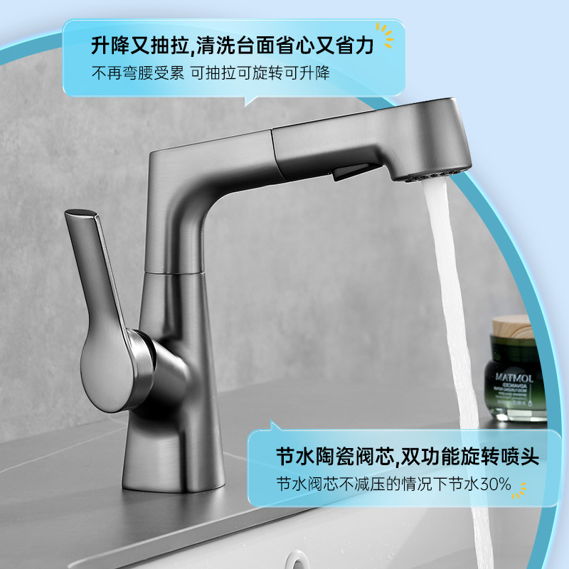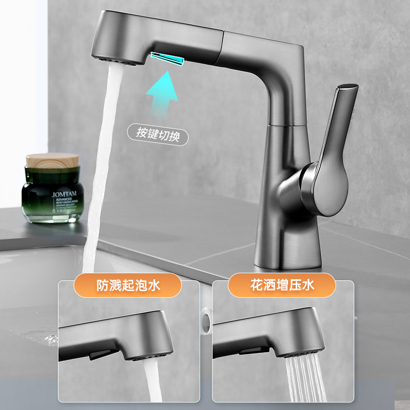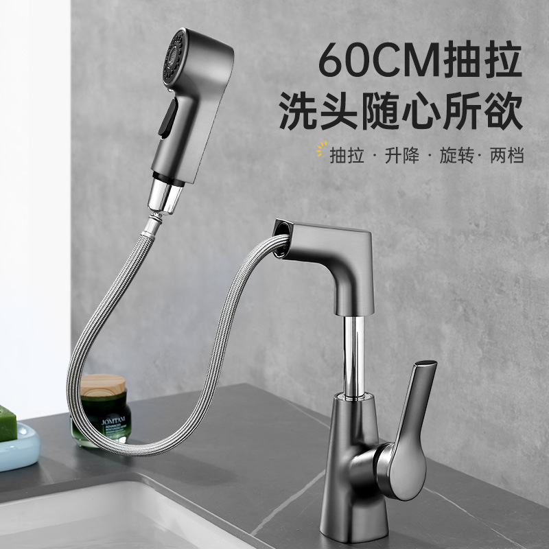 Basin Pull-out Faucet Full Copper Bathroom Toilet Washbasin Hot And Cold Lifting Telescopic Universal Faucet