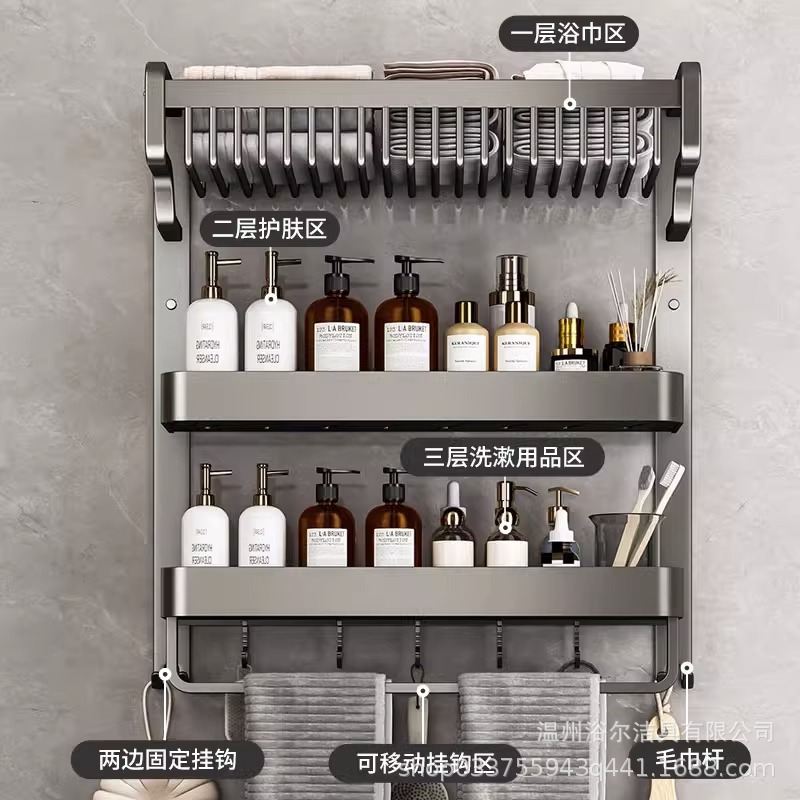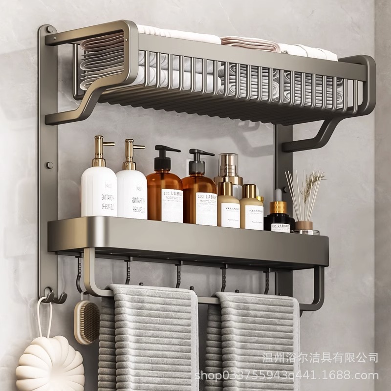 Bathroom Space Aluminum Towel Rack Without Punching Bathroom Storage Rack Storage Household Toilet Mesh Basket Bath Towel Rack Wall Hanging