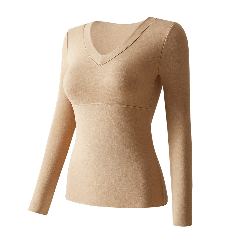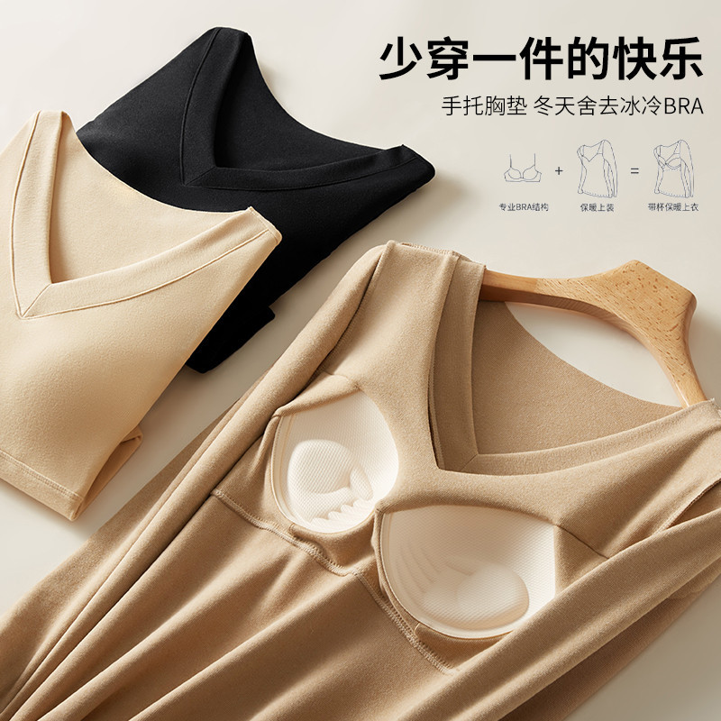 De Rong Thermal Underwear For Women,Plus Velvet And Thickening,Winter Inner And Outer Tops With Chest Pads,All-in-one Long-sleeved Bottoming Shirts