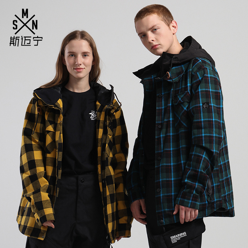 Smeining's Ski Wear,Women's Single-board Plaid Shirt,Warm And Waterproof Double-board Couple's Snow Wear,Men's Ski Shirt Top