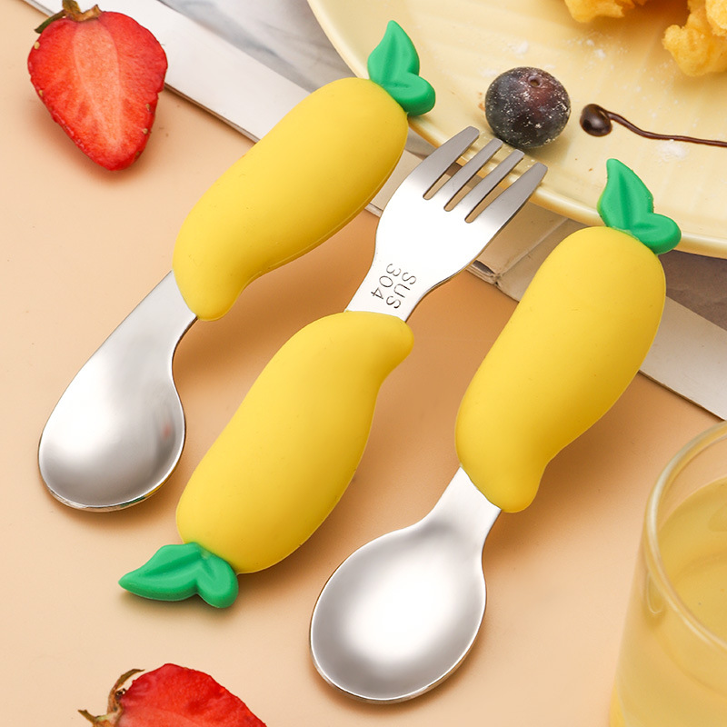 Baby Silicone Food Supplementary Tableware,Baby Learning To Eat Fork And Spoon,Children's Tableware,Children's Spoon Fork
