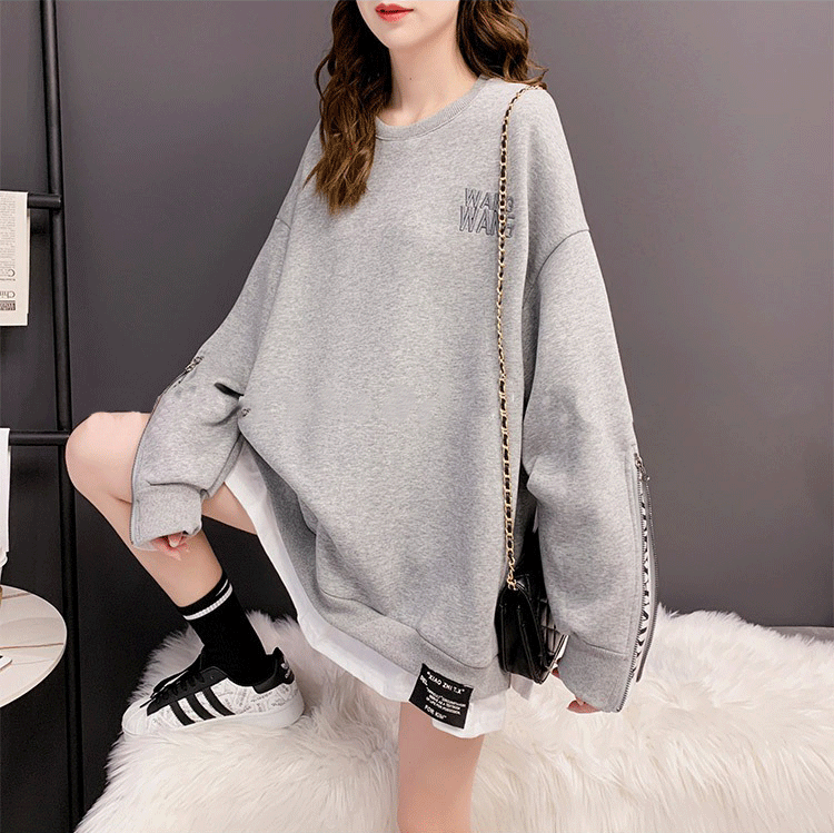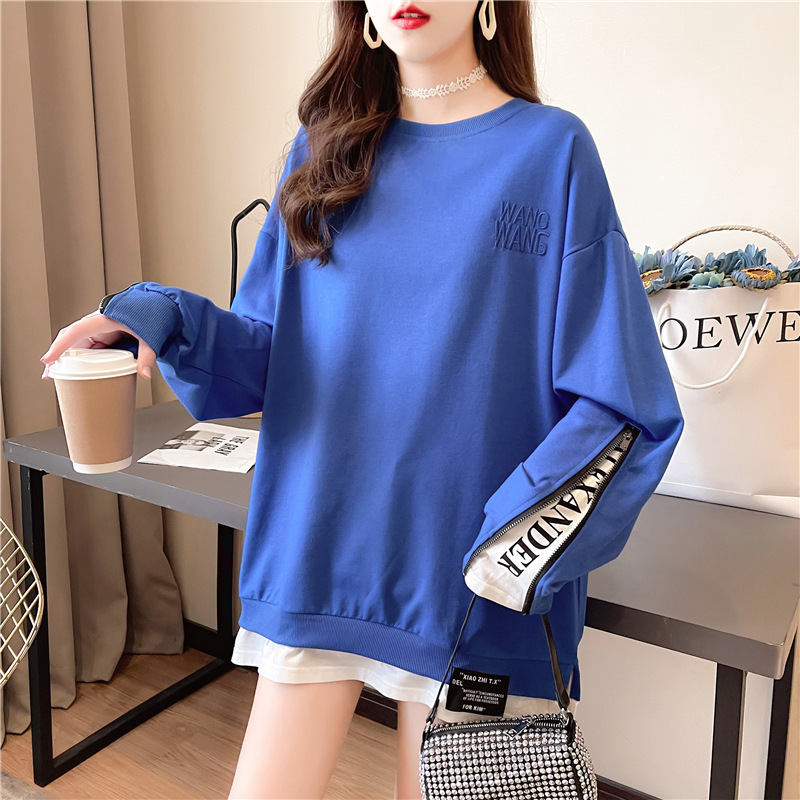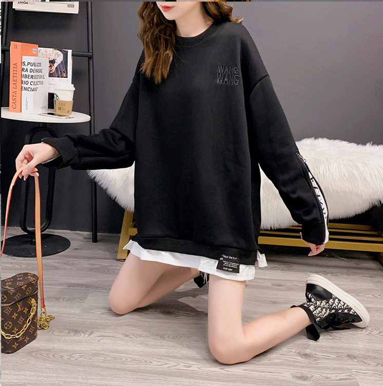 Korean Style Loose Mid-length Fake Two-piece T-shirt,Stylish Top,Thin Hooded Jacket,y Women's Clothing,Foreign Trade