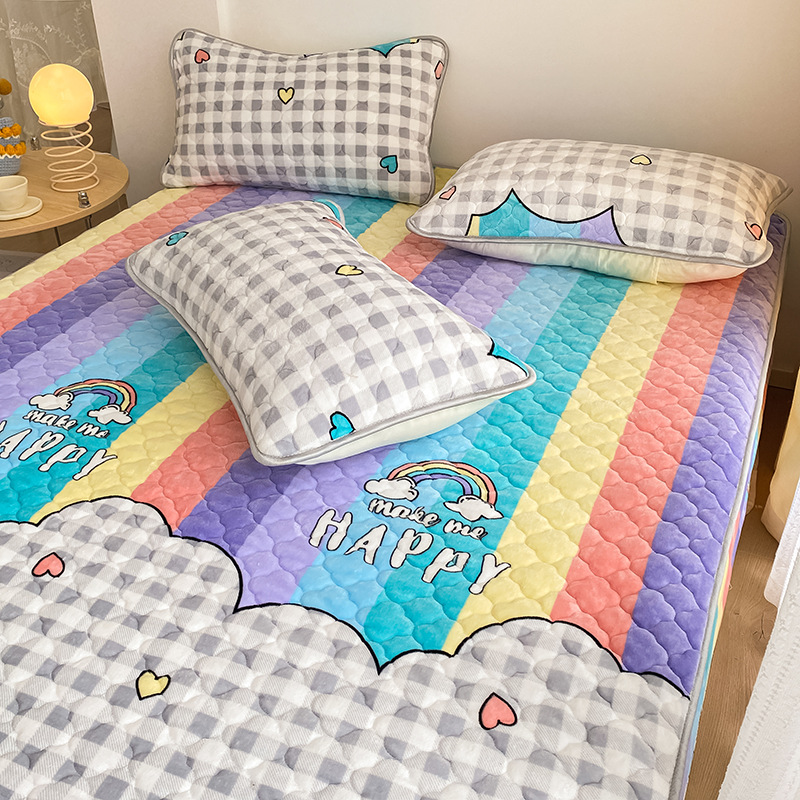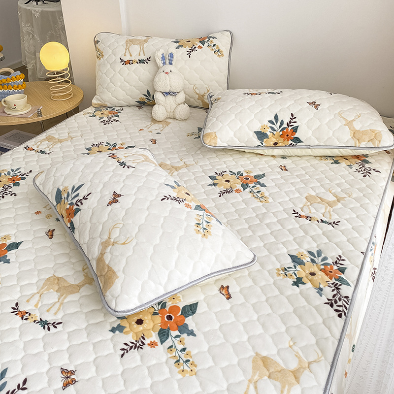 Class AMilk Velvet Quilted Brushed Bed Sheet Pillowcase Autumn And Winter Maternal And Infant Child Warm Farai Coral Velvet Bedspread Bed Bag