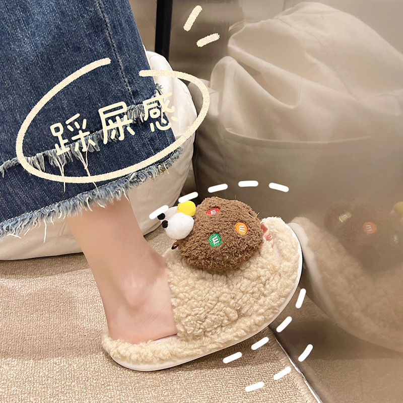 Internet Celebrity Soft-soled Student Couple Hair Slippers Home Non-slip Cartoon Winter Thick-soled Girls Dormitory Cotton Slippers