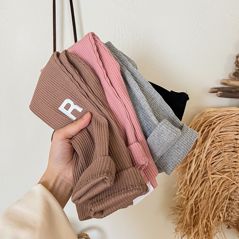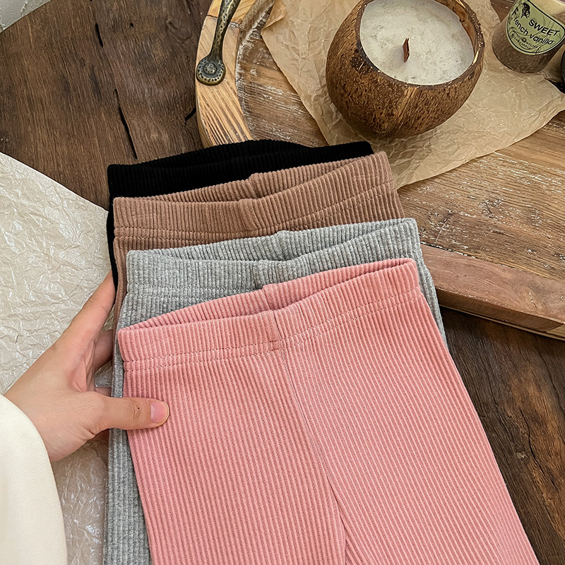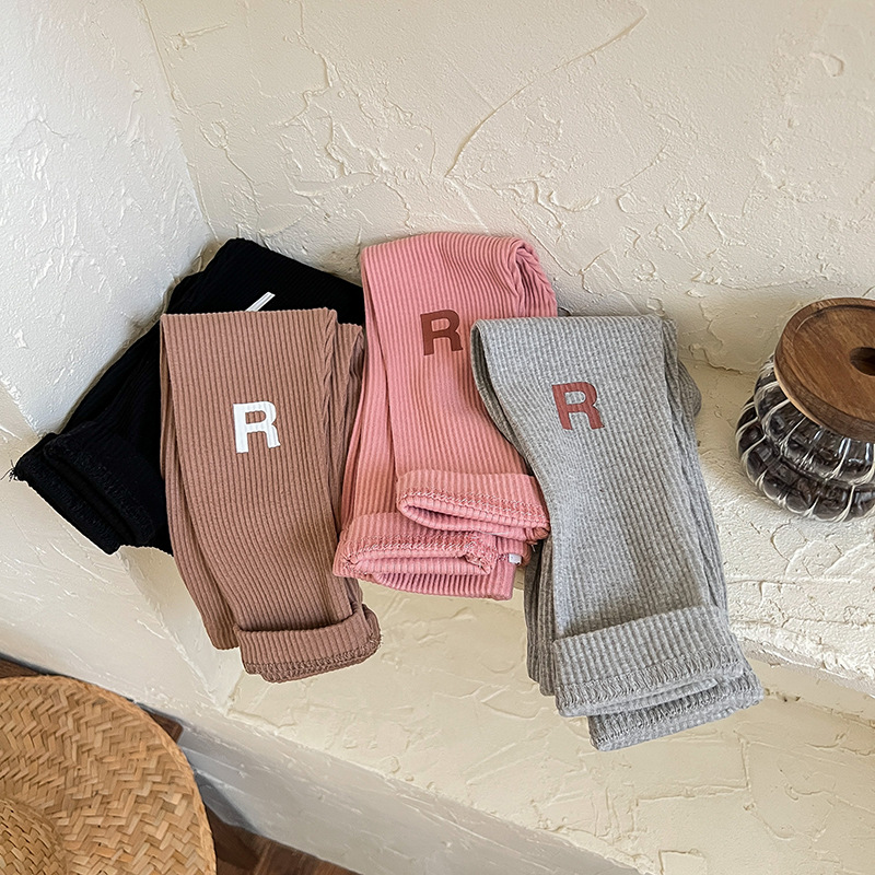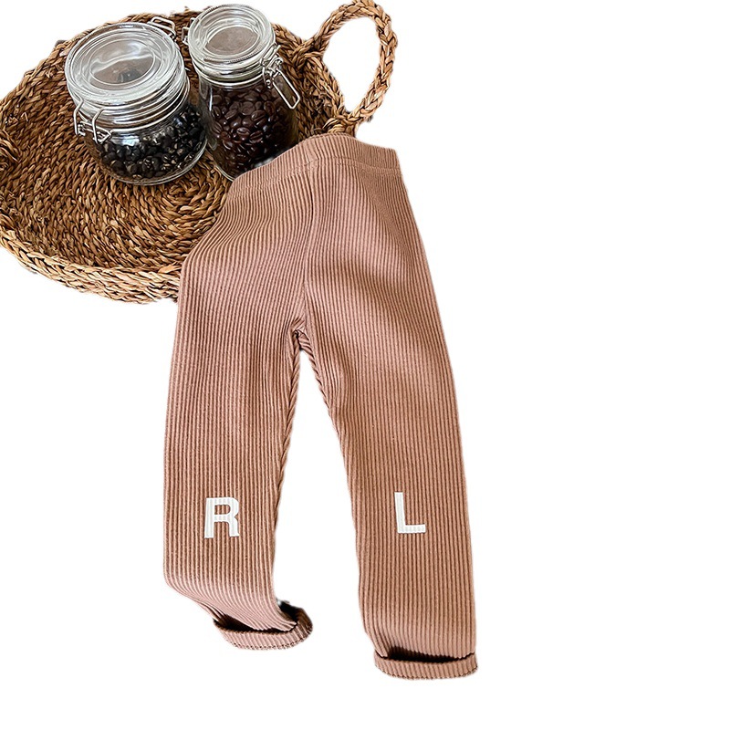 Style Autumn Children's Letter Thickened Leggings Solid Color Pit Pants Girls Stretch Trousers