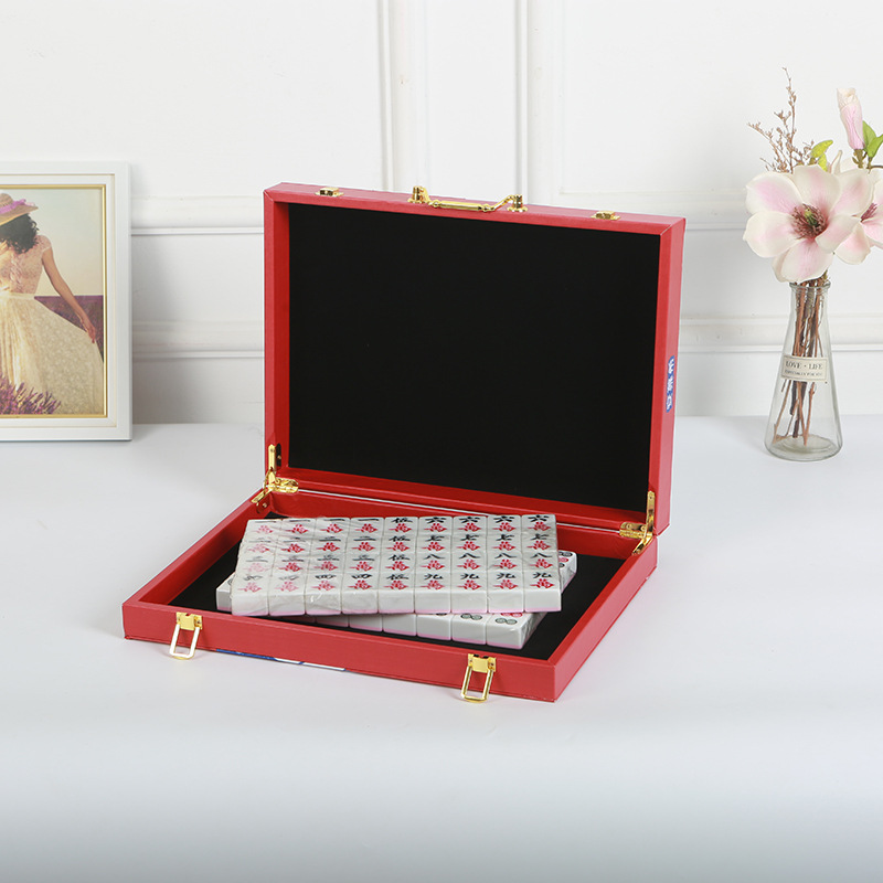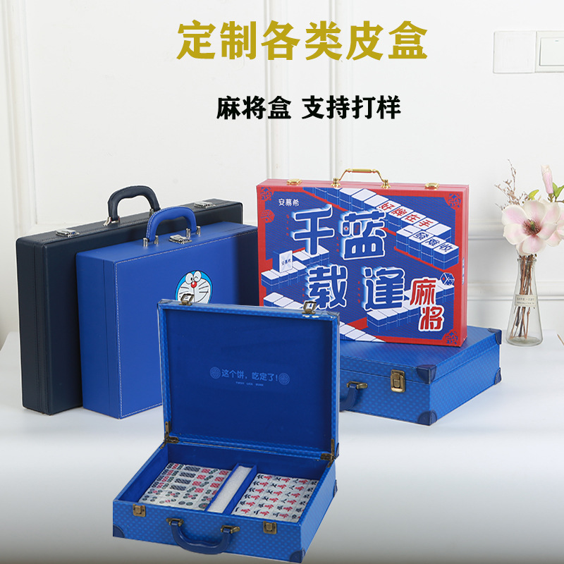 PUMahjong Box Travel Portable Mahjong Box Mini Mahjong Leather Box Chip Box Mahjong Storage Box
