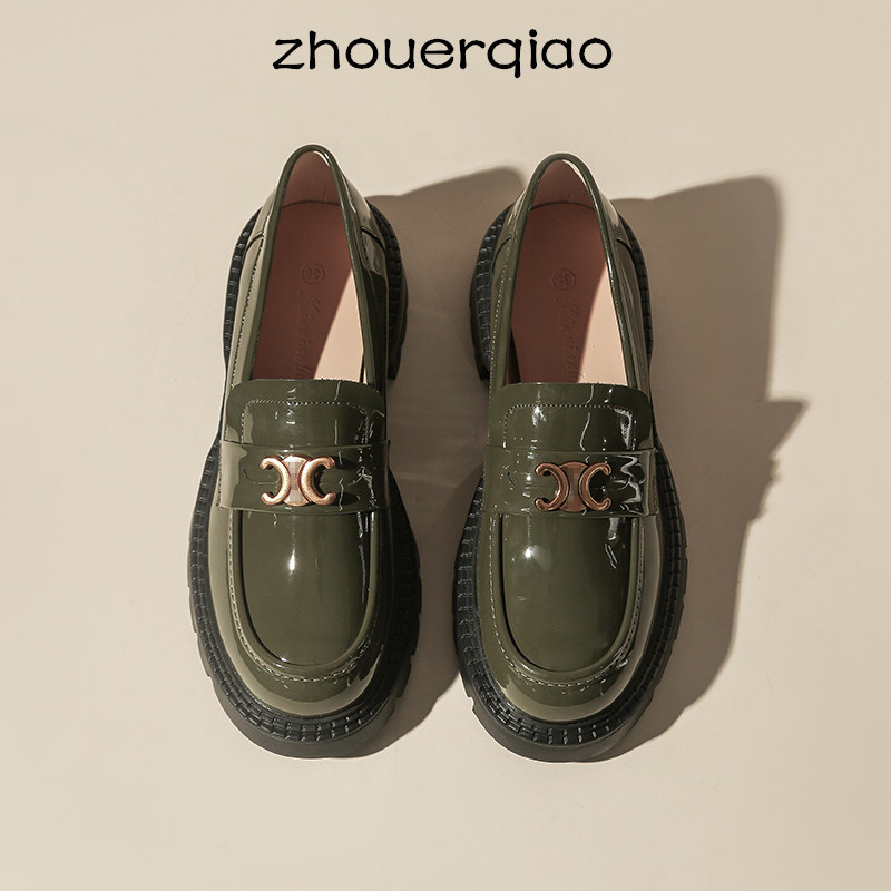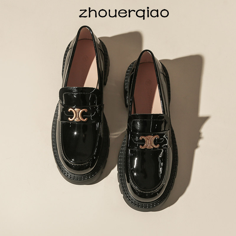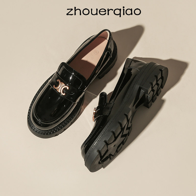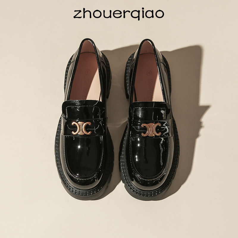 [Tuesday Joe]Small Leather Shoes For Women British Style Retro Loafers Single Shoes Spring Thick Sole Style