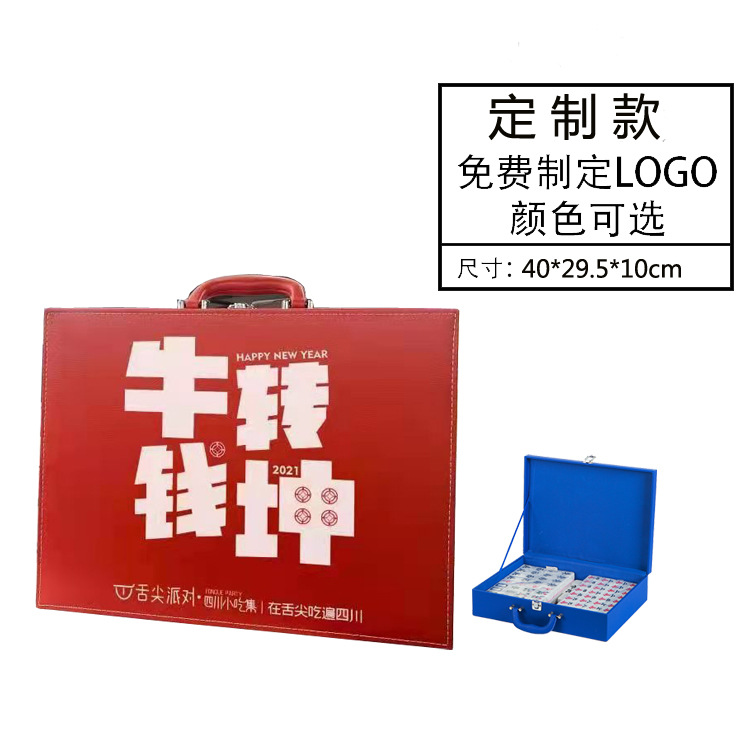 Ready Stock PULeather Mahjong Leather Box42 Travel Mahjong Packaging Gift Box Hand-rolled Mahjong Gift Box Mahjong Box