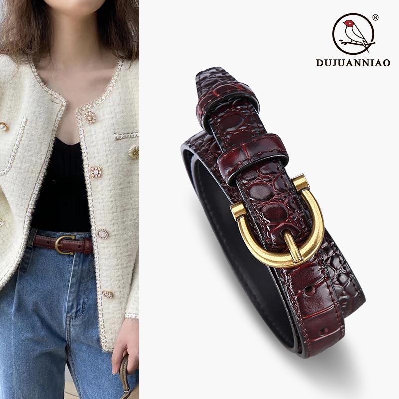 Women's Belt With Crocodile Pattern Decoration,Versatile Jeans,Suit And Dress,Waist-cinching Leather Black Trouser Belt