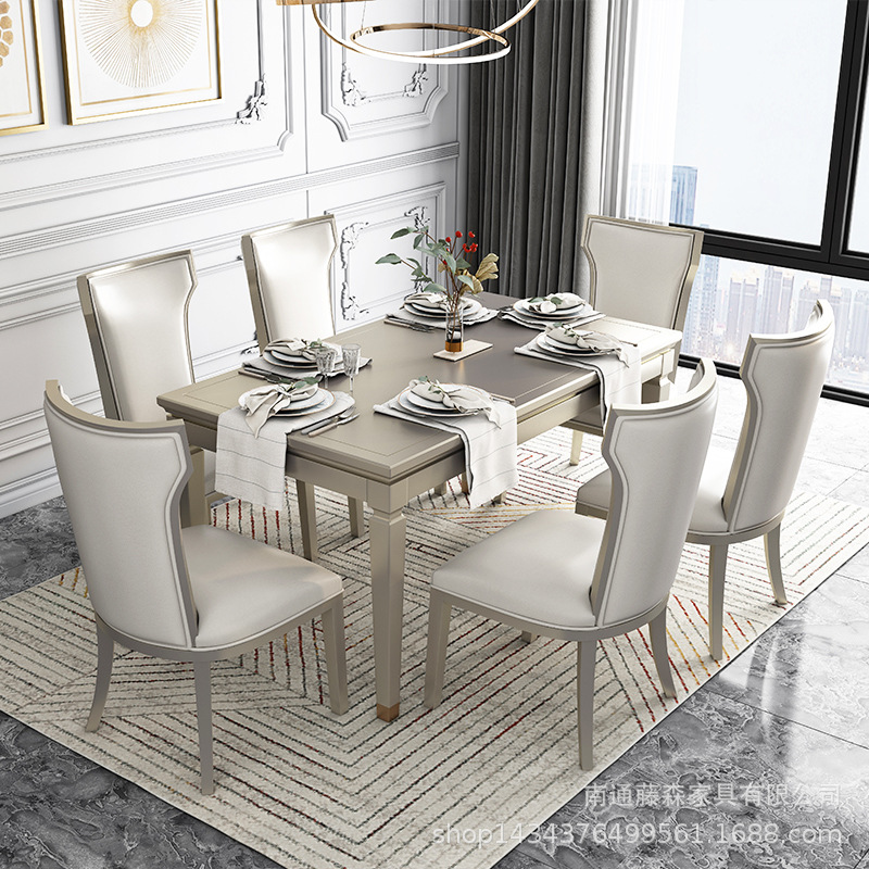 American Light Luxury Solid Wood Dining Table Small Apartment Dining Table And Chair Combination Home Rectangular Dining Table And Chairs