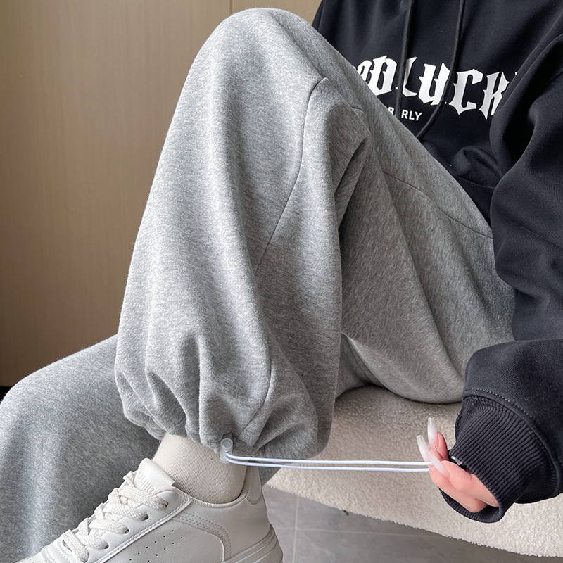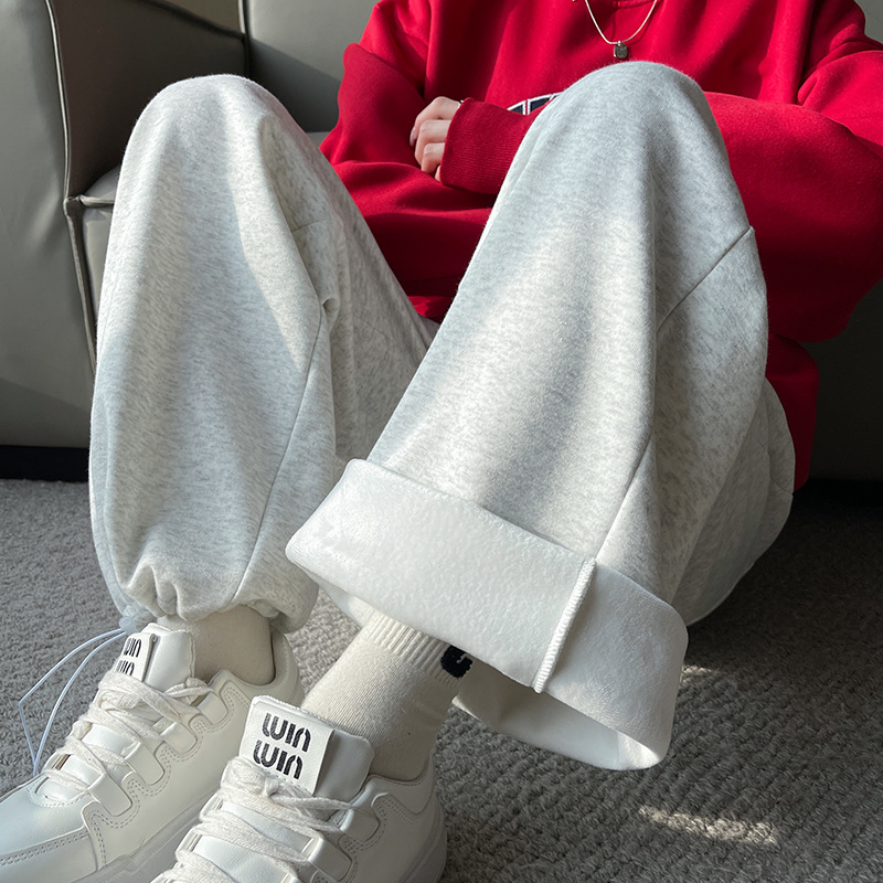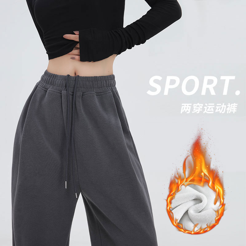 American Gray Sports Pants For Women Autumn And Winter Velvet Thickened Casual Wide-leg Sweatpants For Women