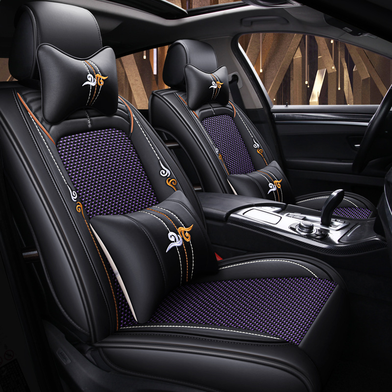 Leather And Ice Silk Car Seat Cushion For Five-seater SUVCar Fully Surrounded Seat Cover Direct Sale D-90