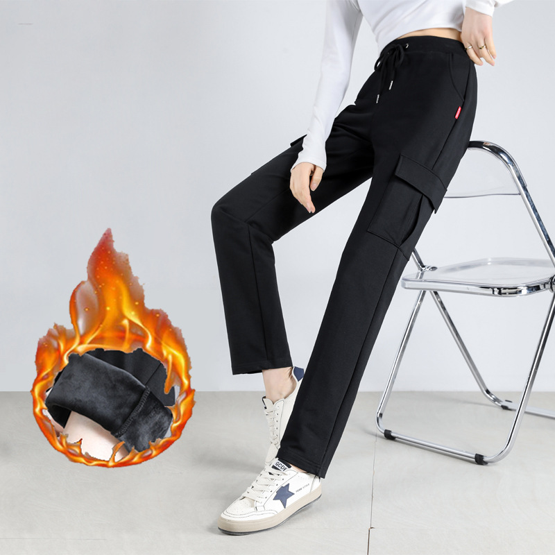 Winter Thickened Velvet Pants For Outer Wear Autumn And Winter Casual Sports Pants For Womeny Loose Women's Pants Multi-pocket Straight Pants