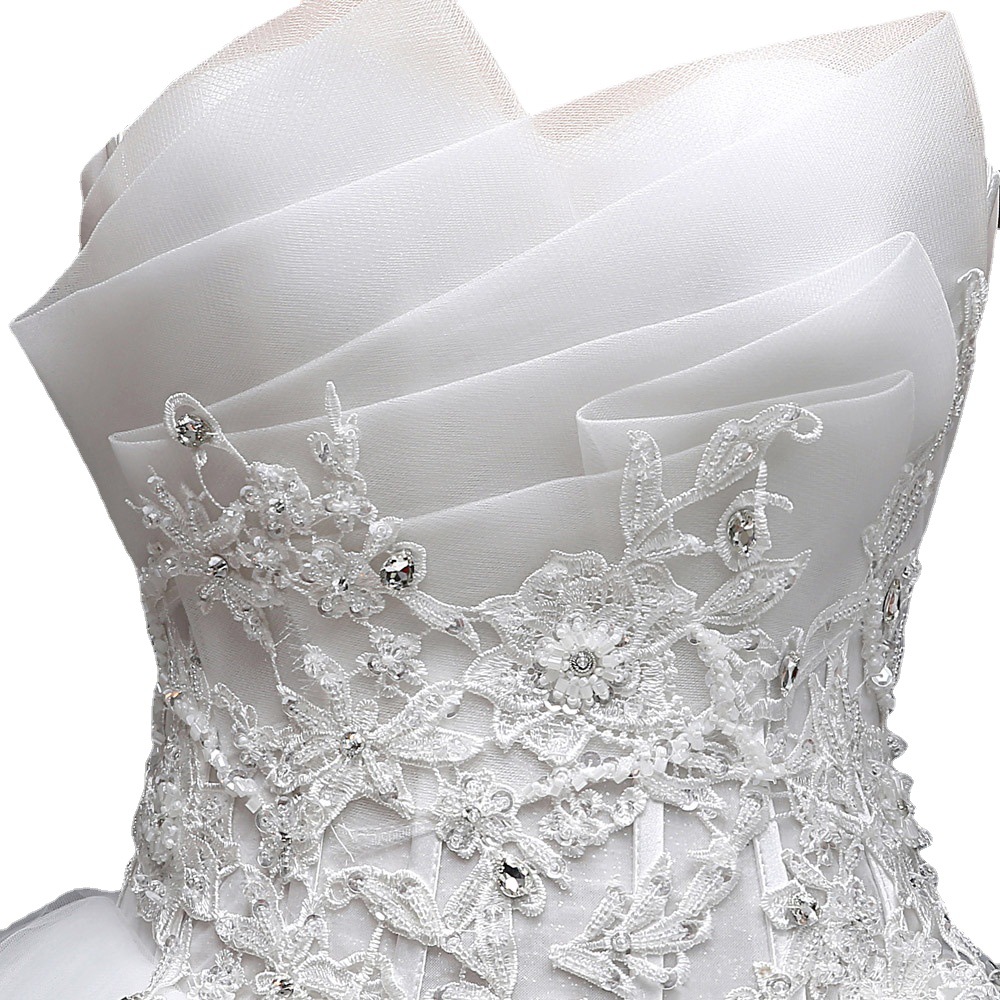 [Bridal Wedding Dress]Tubeless Slim Fit Bridal Wedding Dress Floor-length Slim Korean Large Size Puff Skirt