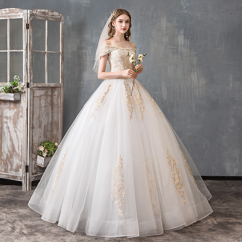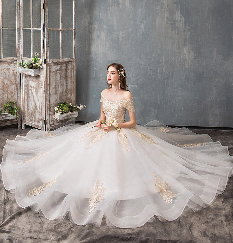 Bride One-shoulder Super Fairy Light And Luxurious Forest Style Simple Princess Wedding Dress For Women