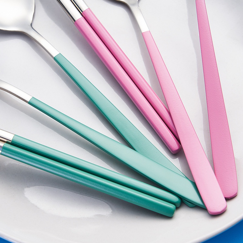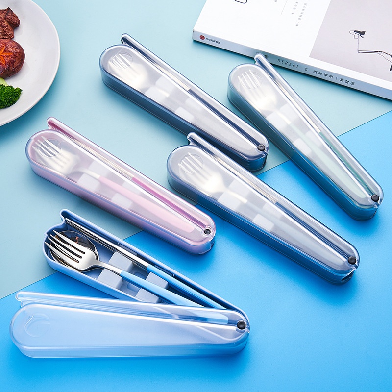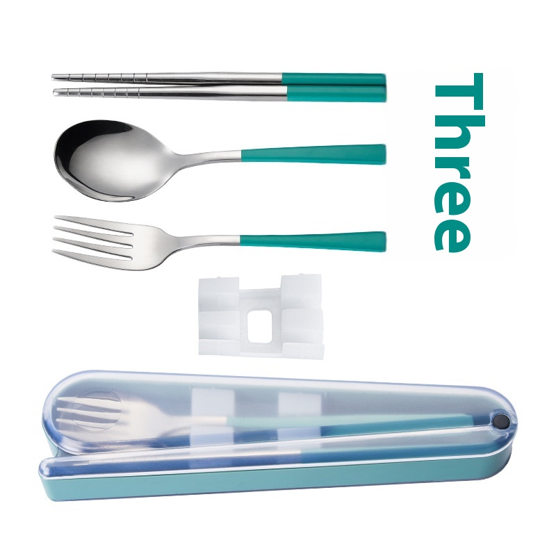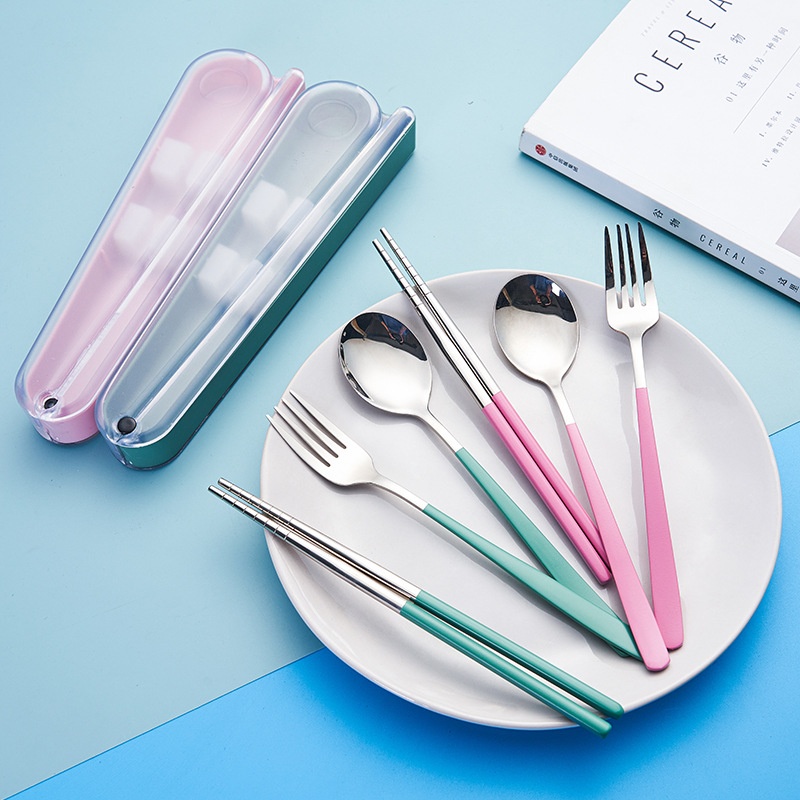 304 Stainless Steel Fork Spoon Chopsticks Student Tableware Storage Box Three-piece Set Portable Gift Tableware