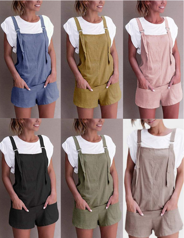 Summer European Style Sweet High-waist Slim Pocket Overalls Shorts Cotton Multi-color Jumpsuit