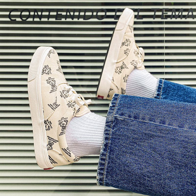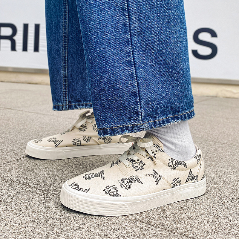 Men's Shoesy Shoes Niche Cartoon Print Canvas Shoes Boys Low-top Couples Versatile Casual Shoes