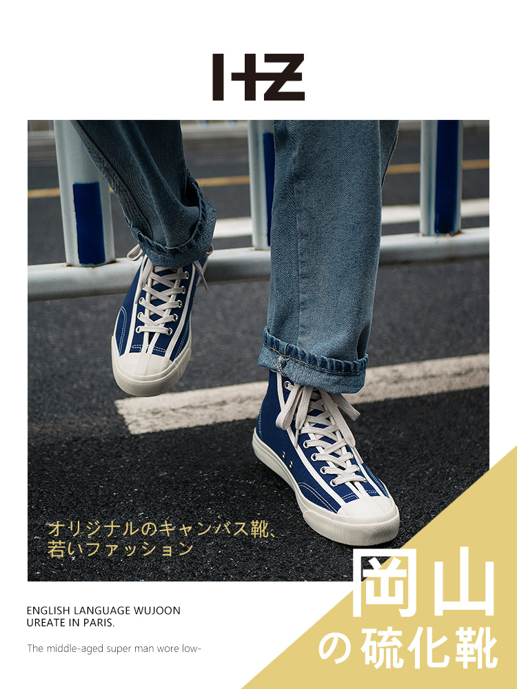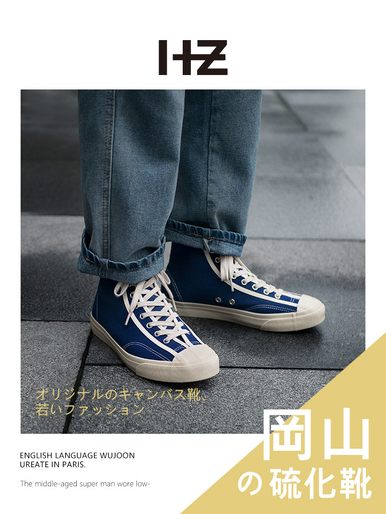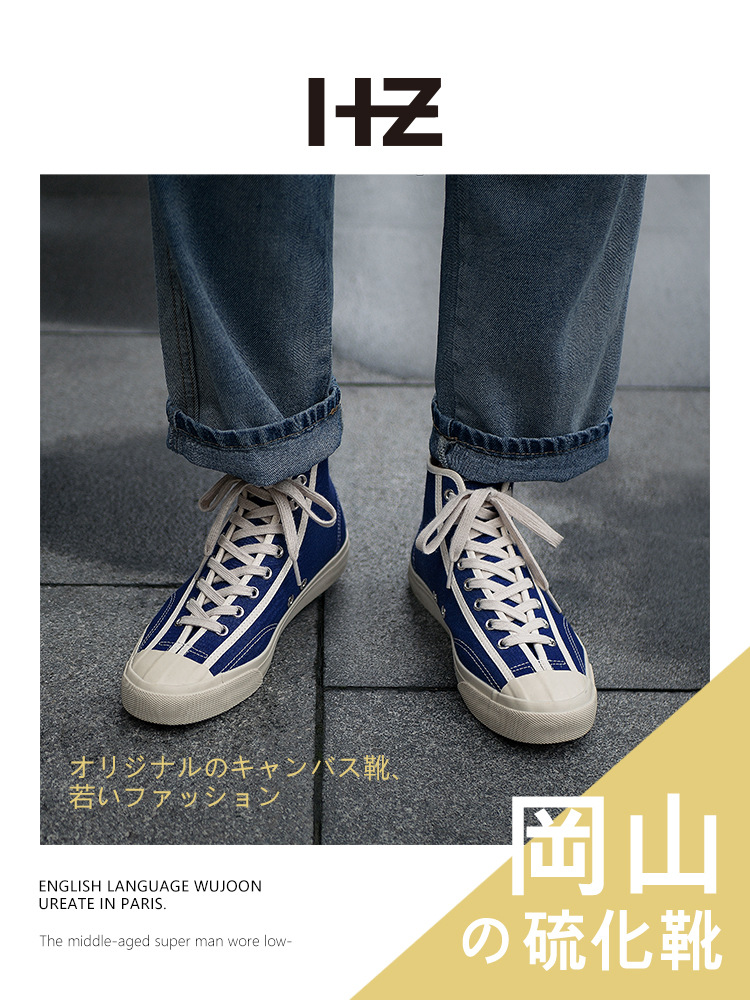 Okayama Japanese High-top Canvas Shoes Men's Breathable Kurume Vulcanized Shoes Retro Couple Casual Versatile Niche Sneakers