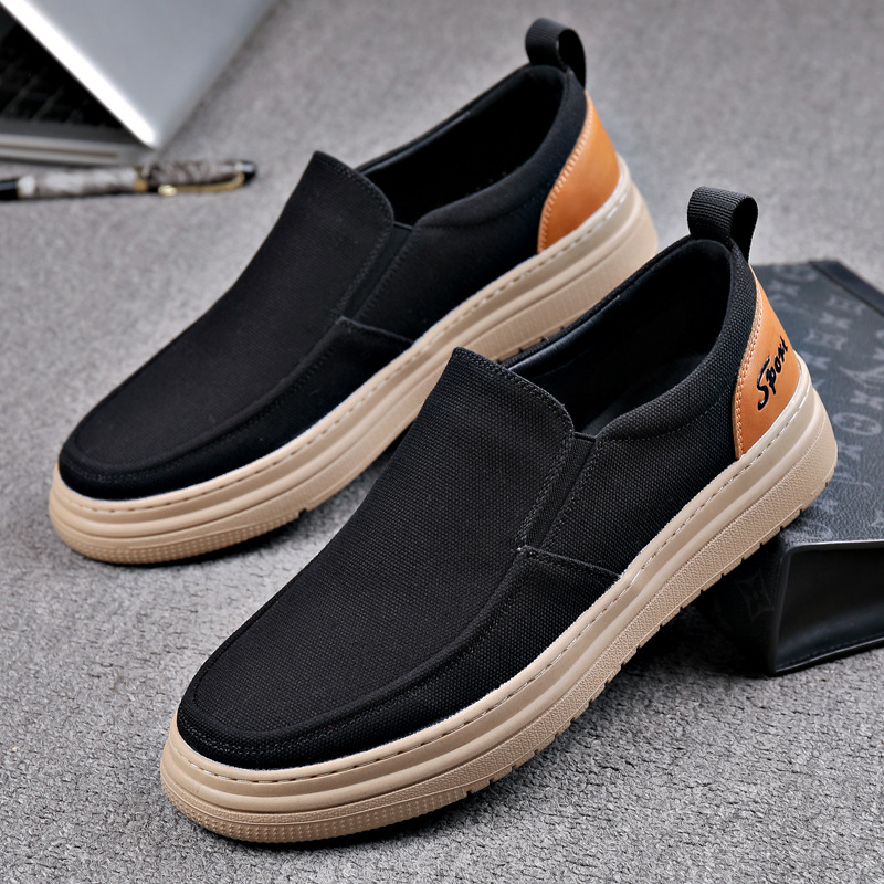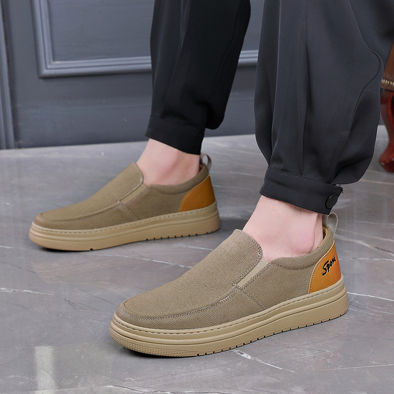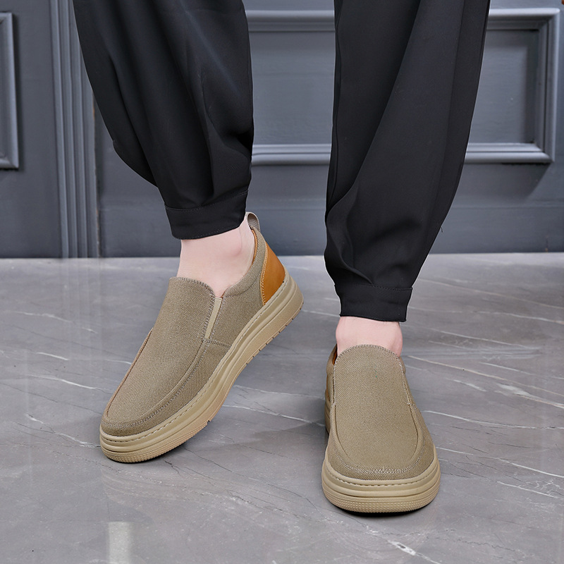 Men's Lightweight Thick-soled Canvas Shoes,Casual And Versatile Slip-on Shoes,Fashionable,Comfortable And Breathable Driving Shoes For Men