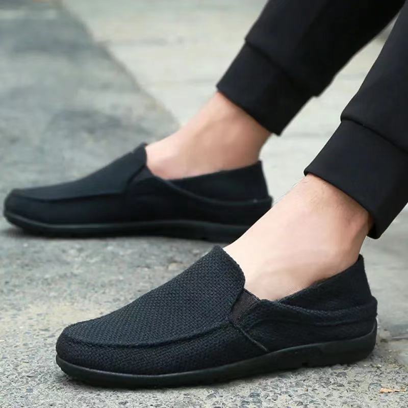 Old Beijing Cloth Shoes Men's Autumn Soft-soled Breathable Cloth Shoes Black Canvas Shoes Slip-on Lazy Casual Men's Shoes Style