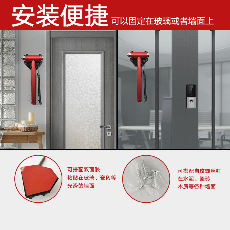 School Workshop Aluminum Alloy Safety Hammer With Anti-theft Rope Office Fire Glass Escape Hammer Window Breaker