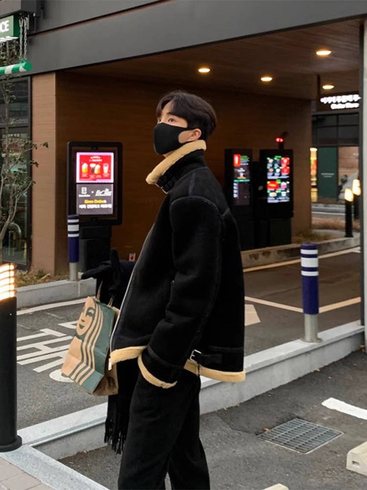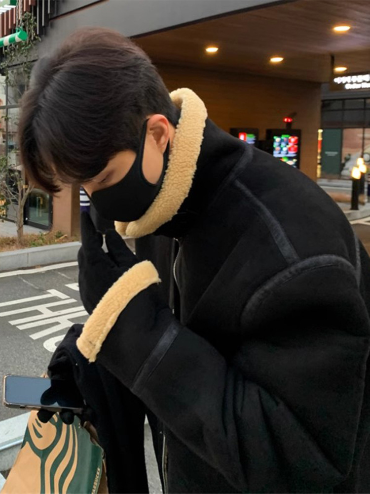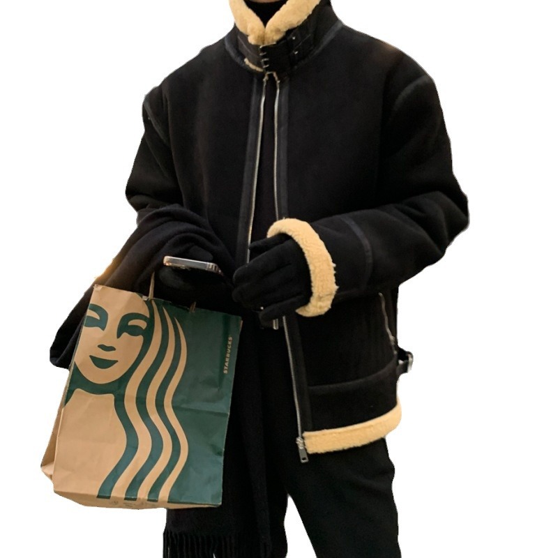 British Yuppie Style Men's Suede Lamb Wool Cotton Jacket Winter Men's High-end Pilot Cotton Jacket