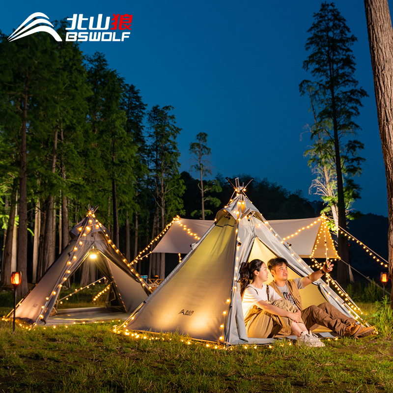 Outdoor Camping Pyramid Indian Tipi Tent With Sunshade,Waterproof,Rainproof And Sunproof Tipi Tent For3-4 People Plus Size