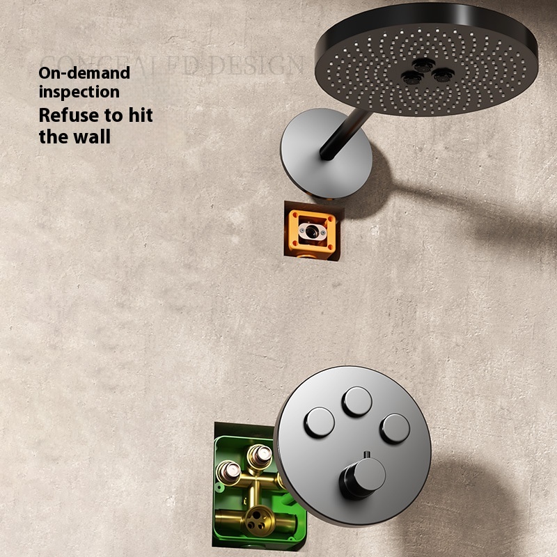 Imitation Ecological Raindance Full Copper Constant Temperature Concealed Shower Set Hidden Shower Set White Simple Shower Set
