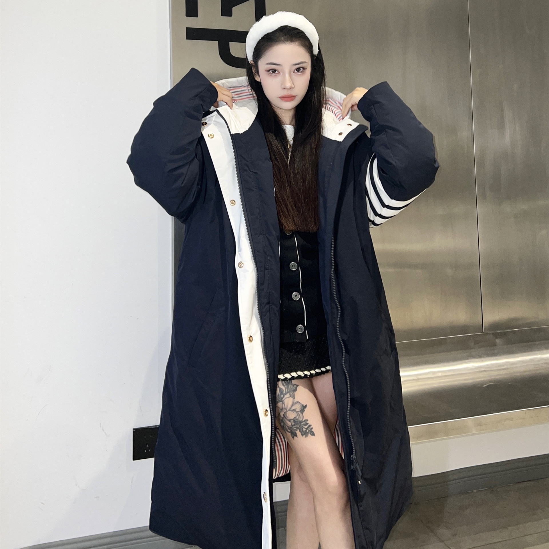 THOMBIRUCROWomen's Winter Classic Four-bar White Placket Down Jacket For Men And Women,y And Fashionable Jacket