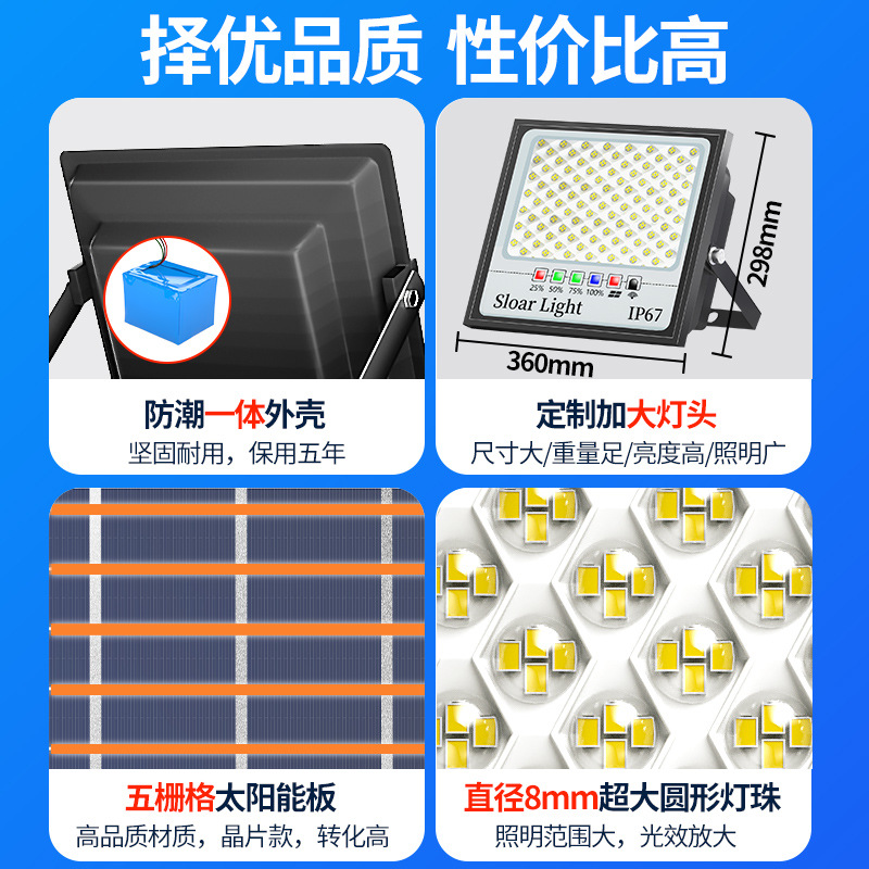 Solar Lamp Outdoor Garden Lamp Rural Area Super Bright High Power Floodlight Waterproof Household Induction Lighting Street Lamp