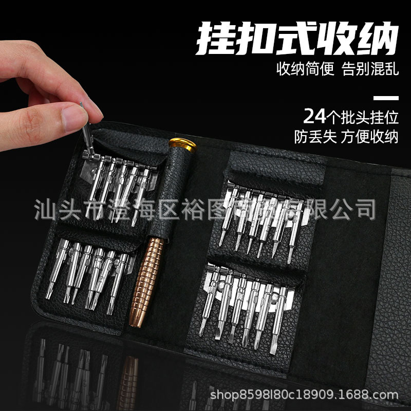 25-in-1 Leather Case Multi-purpose Manual Screwdriver Bit Set Mobile Phone Laptop Repair Tools