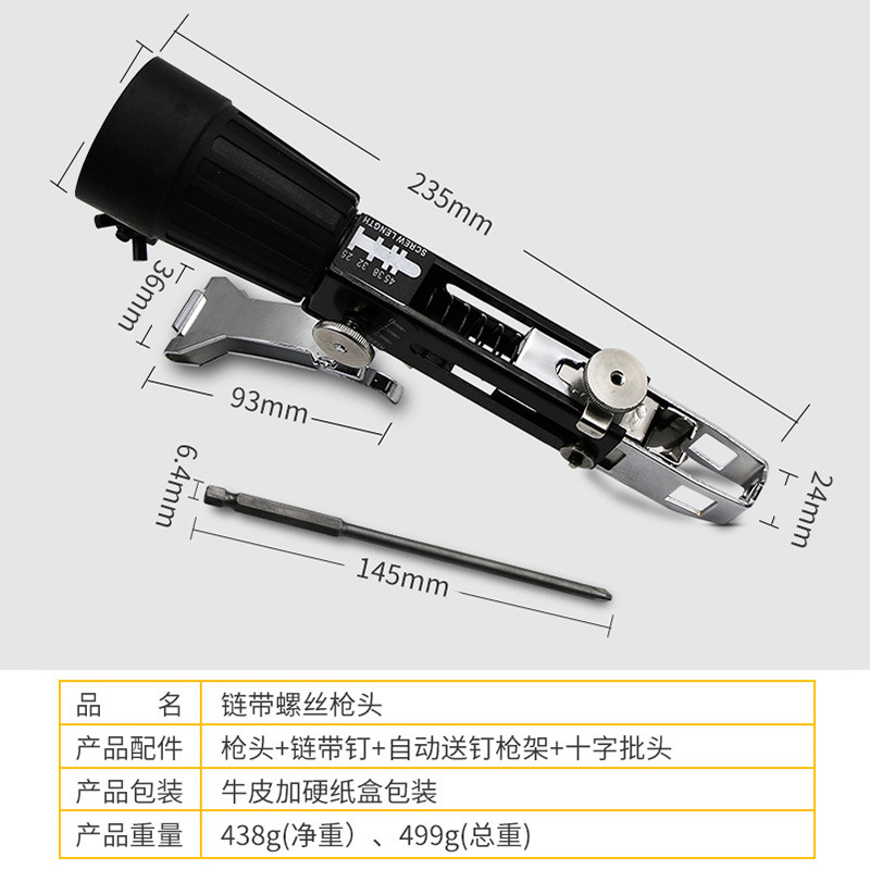 Chain Belt Screw Gun Head Automatic Dery Nail Gun Electric Screwdriver Woodworking Decoration Gypsum Board Self-tapping Bit