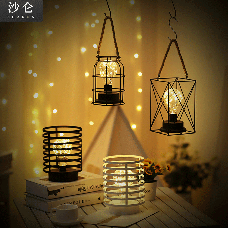 Camping Portable Lamp Round Hanging Lamp Christmas Square Hanging Modeling Lamp Bedroom Wrought Iron Table Lamp Led Lantern Decorative Lamp
