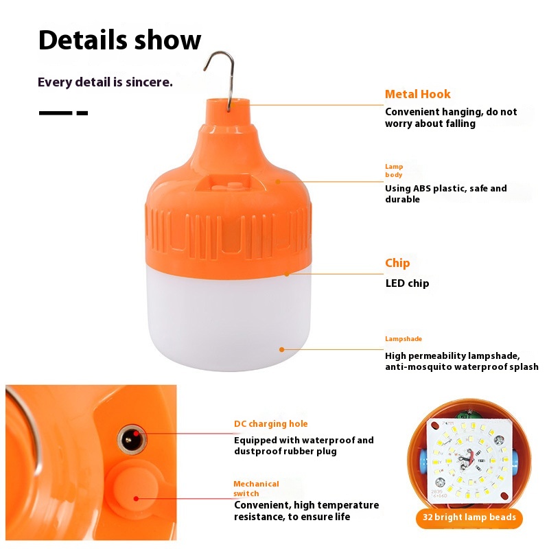Two-tone Lighting Led Rechargeable Light Bulb Night Market Lamp Street Stall Lamp Stall Light Bulb Outdoor Home Emergency USBCharging