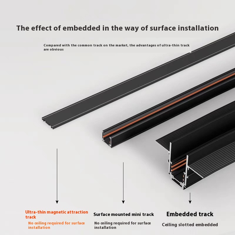 Magnetic Track Light Surface-mounted Ultra-thin5mm Black And White Magnetic Light Led Ceiling-free Home Living Room Without Main Light Track