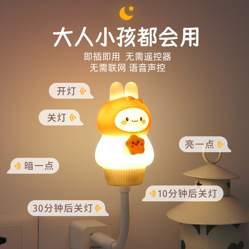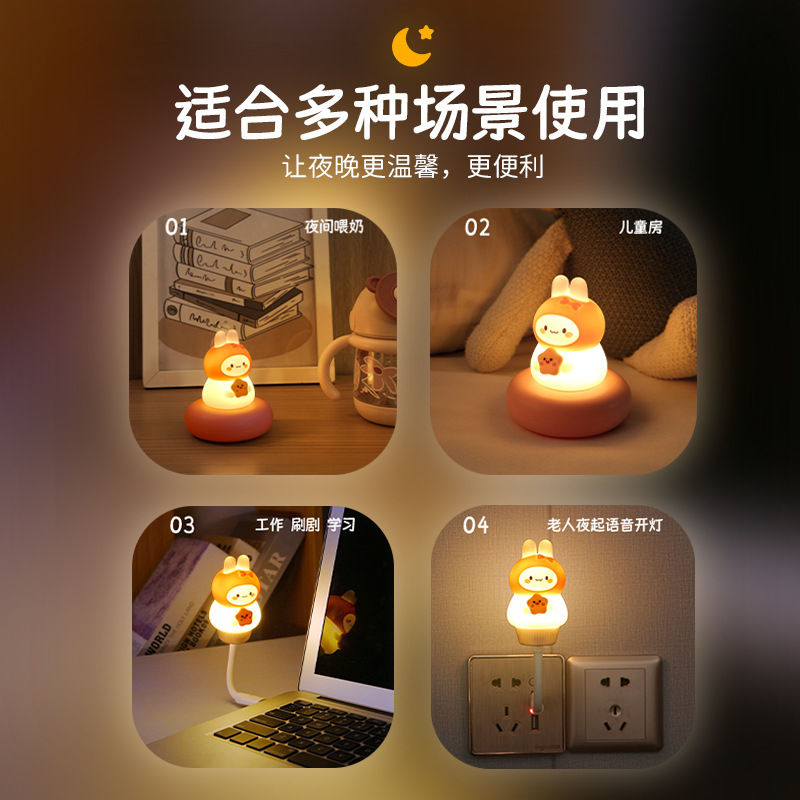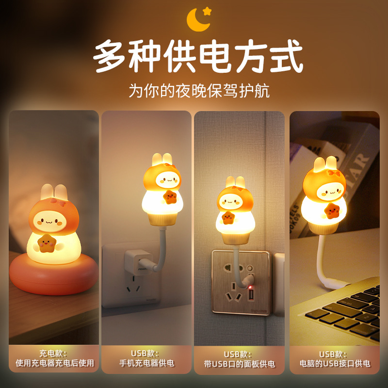 Rechargeable Eye Protection Energy-saving Night Light Rabbit Bedroom Bedside Night Eye Protection Home Sleeping Dormitory Table Lamp Gift Desktop