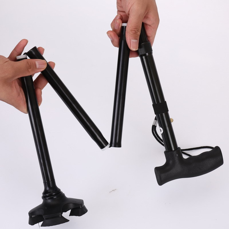 Thickened Aluminum Alloy Folding Cane,4-section Telescopic Adjustable Height Cane Non-slip Four-legged Cane For The Elderly