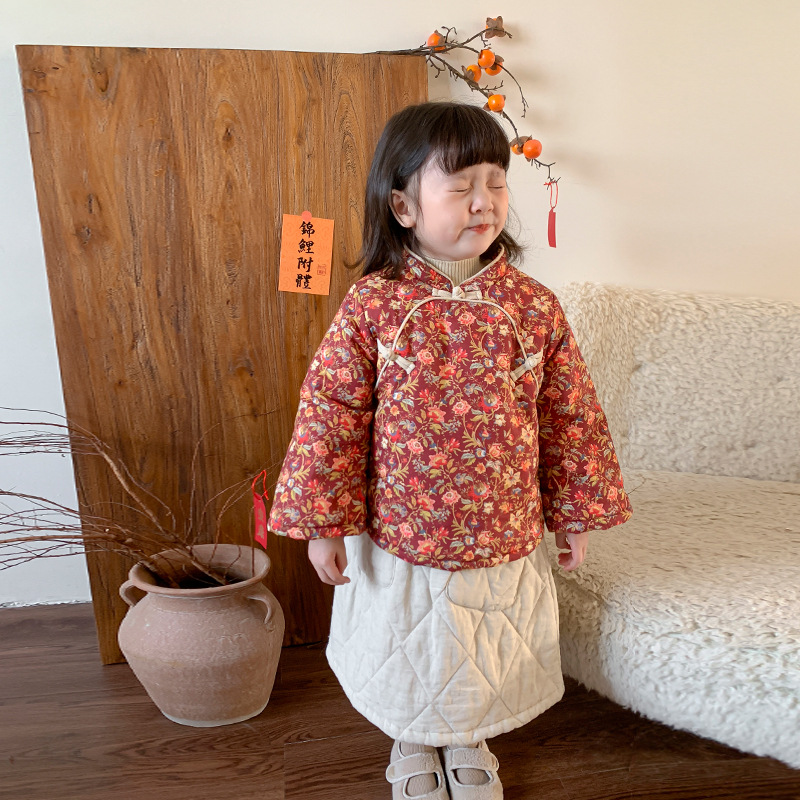 Weimu Children's Clothing Girls'Cotton Coats Winter Clothing Baby Cheongsam Tops Year's Clothing For Small And Medium-sized Children's Cotton Clothing