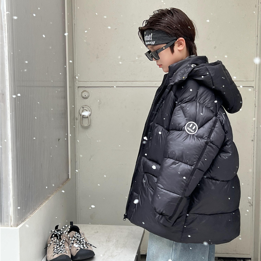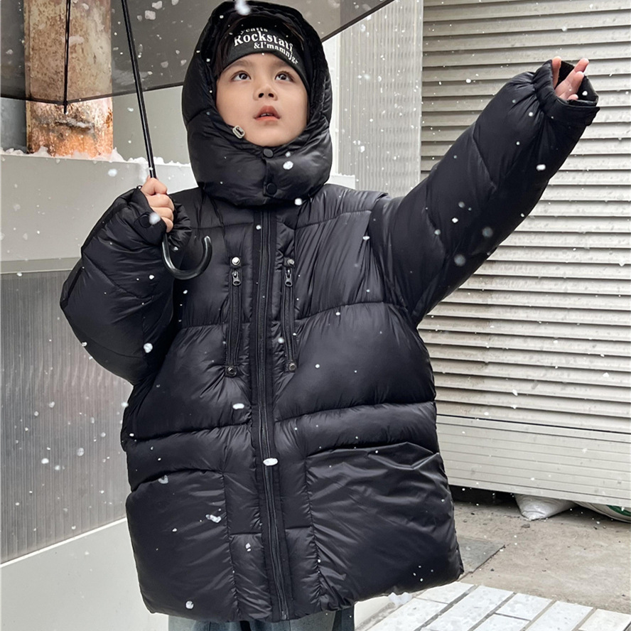 23 Winter Children's Cotton Clothes Korean Style Mid-Length Extra Thick Hooded Granular Velvet Hand-stuffed Cotton Clothes For Boys And Girls Baby Cotton Clothes
