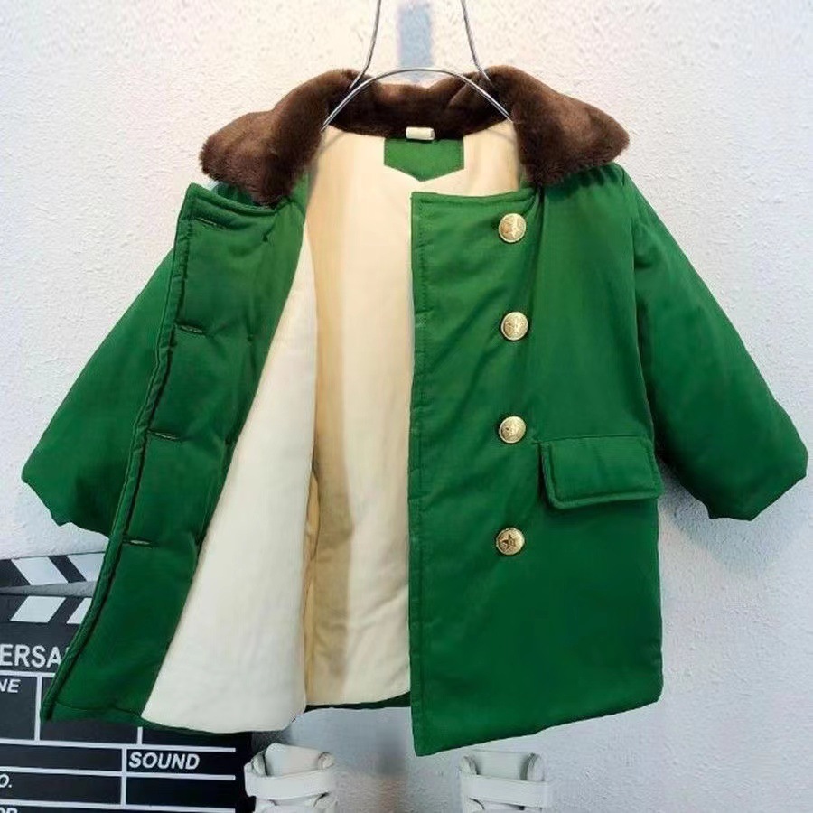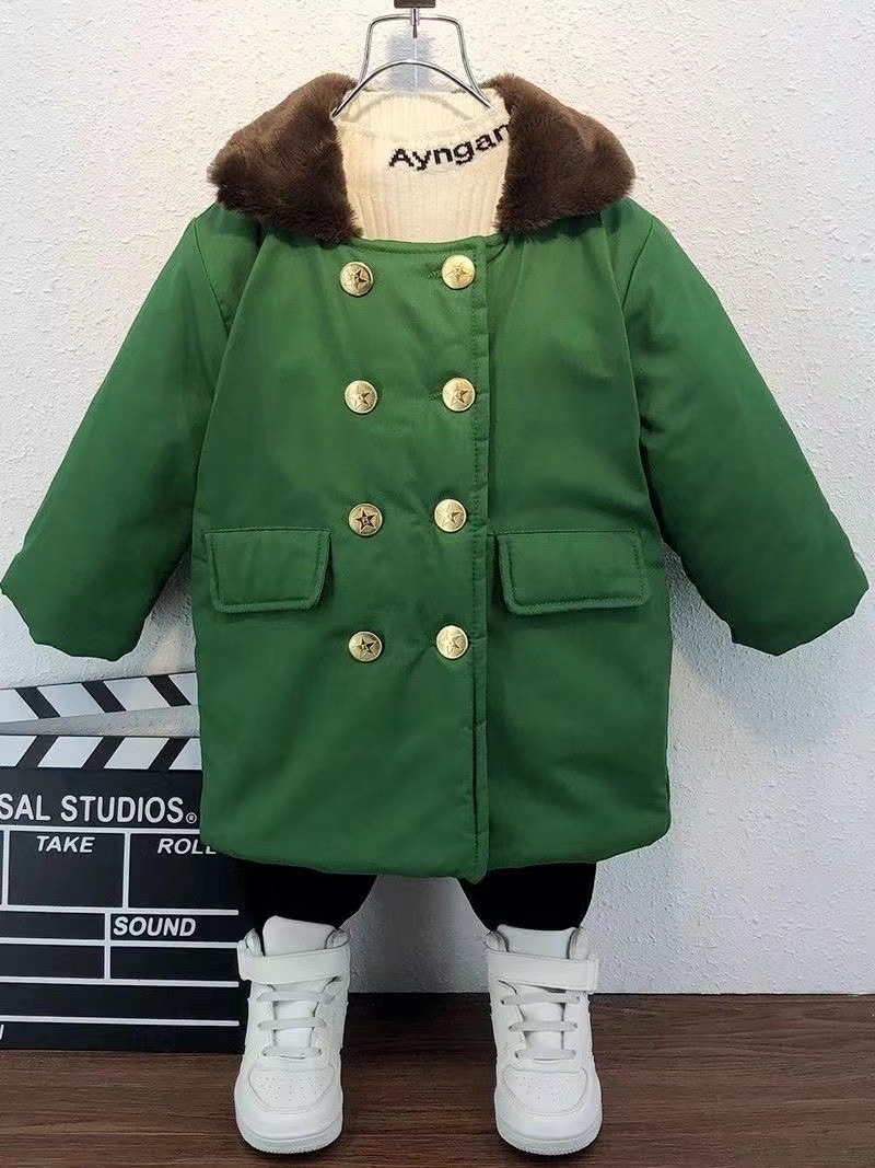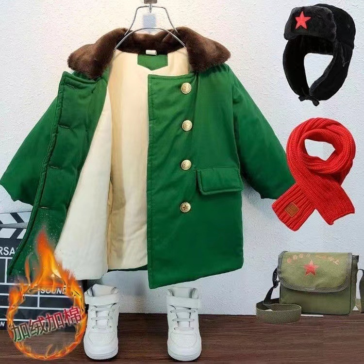 Old Style Military Cotton Coat Children's Northeastern Cotton Coat Boy Scout Winter Coat Military Green Coat Children's Velvet Thickened Cotton Coat