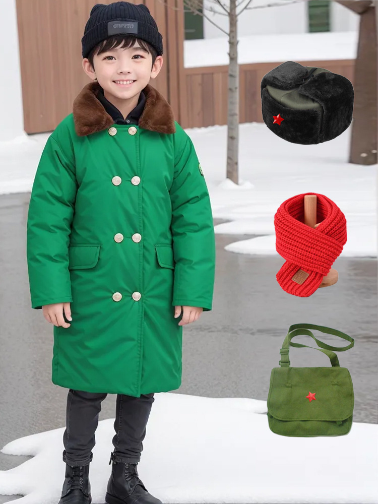 Children's Army Green Coat,Boys'Clothing,Baby Girl's Winter Thickened Cotton Velvet Jacket,Children's Douyin Internet Celebrity Year's Cotton Clothing