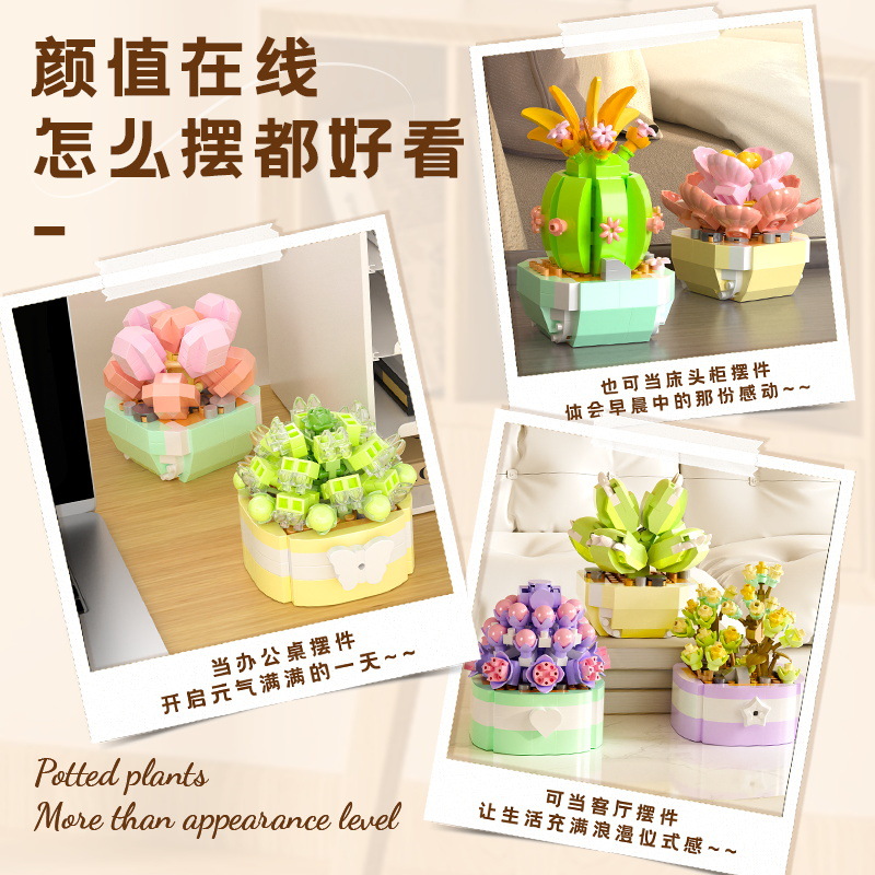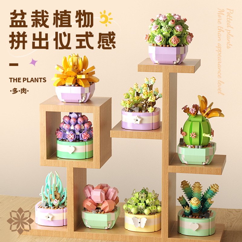Yugao Succulent Building Blocks Micro-particle Children's Assembled Simulation Potted Plant Flower Desk Table Model Ornaments Toys Gifts