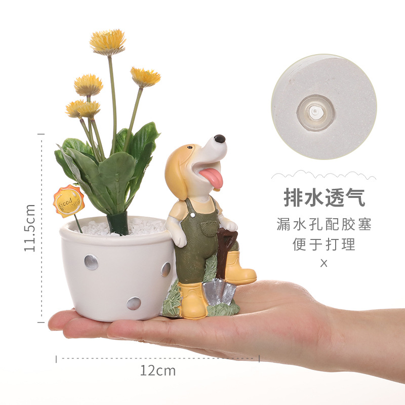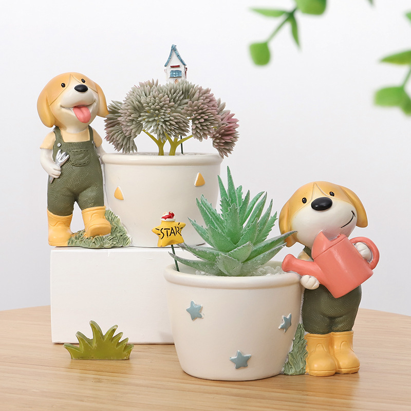 Creative Cartoon Beagle Succulent Flower Pot Home Balcony Resin Small Flower Pot Desktop Micro Landscape Gardening